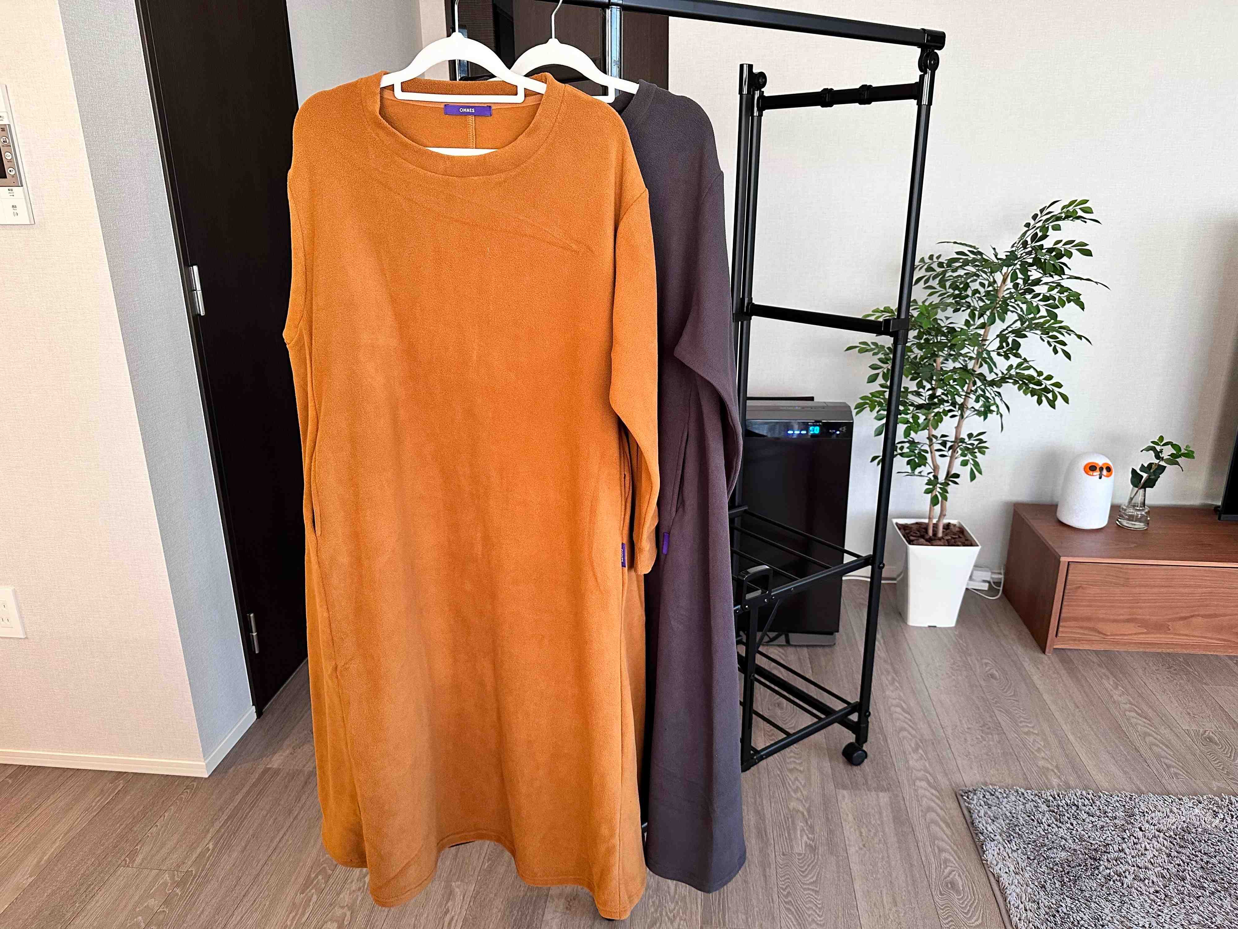 楽天で購入した『OMNESマイクロフリースフレアワンピース』です。価格は1,490円(税込)で送料無料です。