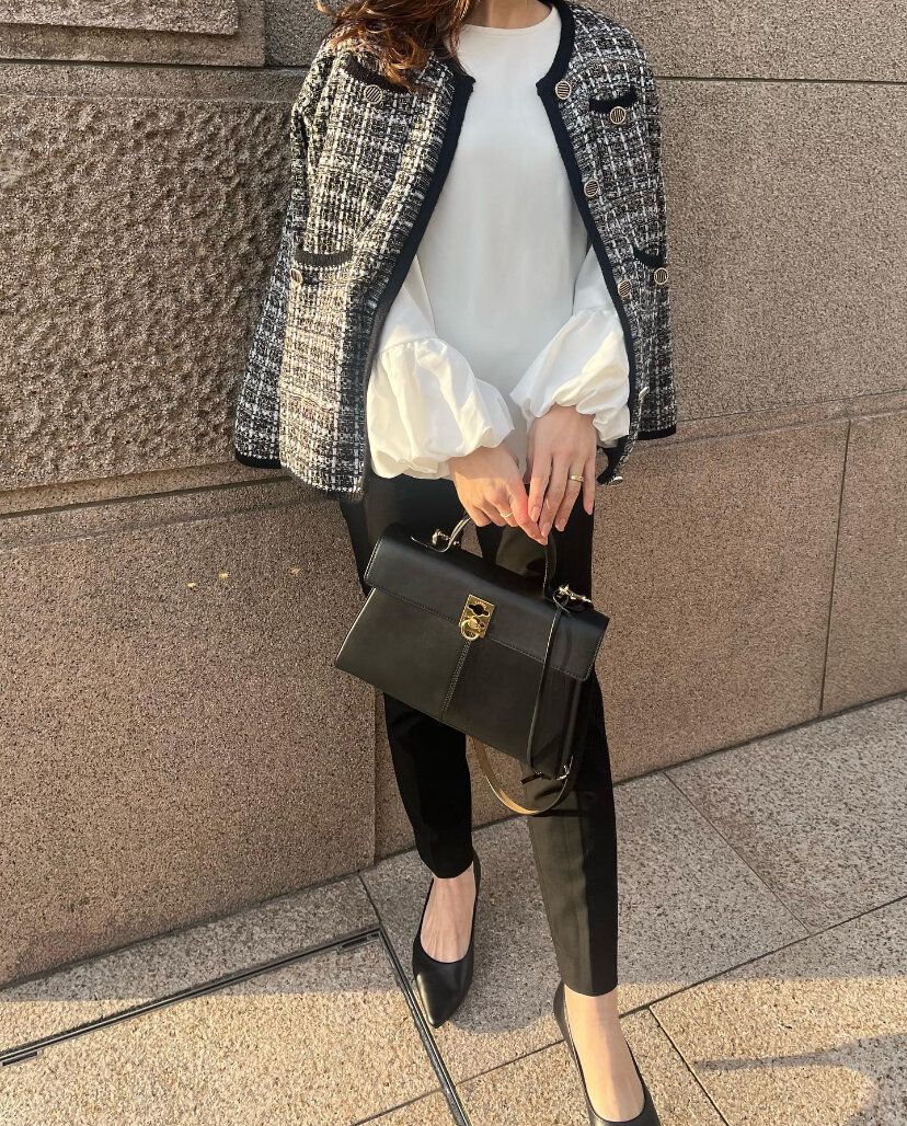 ユニクロのボトムスはシンプルだからこそ大活躍してくれます。とくにブラックのボトムスは合わせるトップスによってさまざまなシーンに対応できるファッションアイテム。春もトレンドのツイードジャケットを羽織ればおしゃれなオケージョンスタイルが完成します。