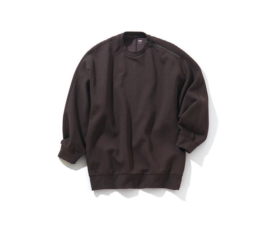 ツルッとした素材感が上品に見えて、40代が使いやすいスウェット。肩のジッパーがアクセント。(ダークブラウン、オフホワイト、ブラック・全3色)/ユニクロ