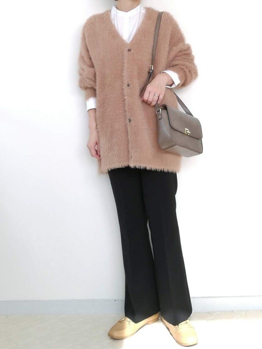 ふんわりしたルックスのカーディガンは、女らしい着こなしにもマッチ。メンズアイテムながら、女性にも似合う隠れた名品です。