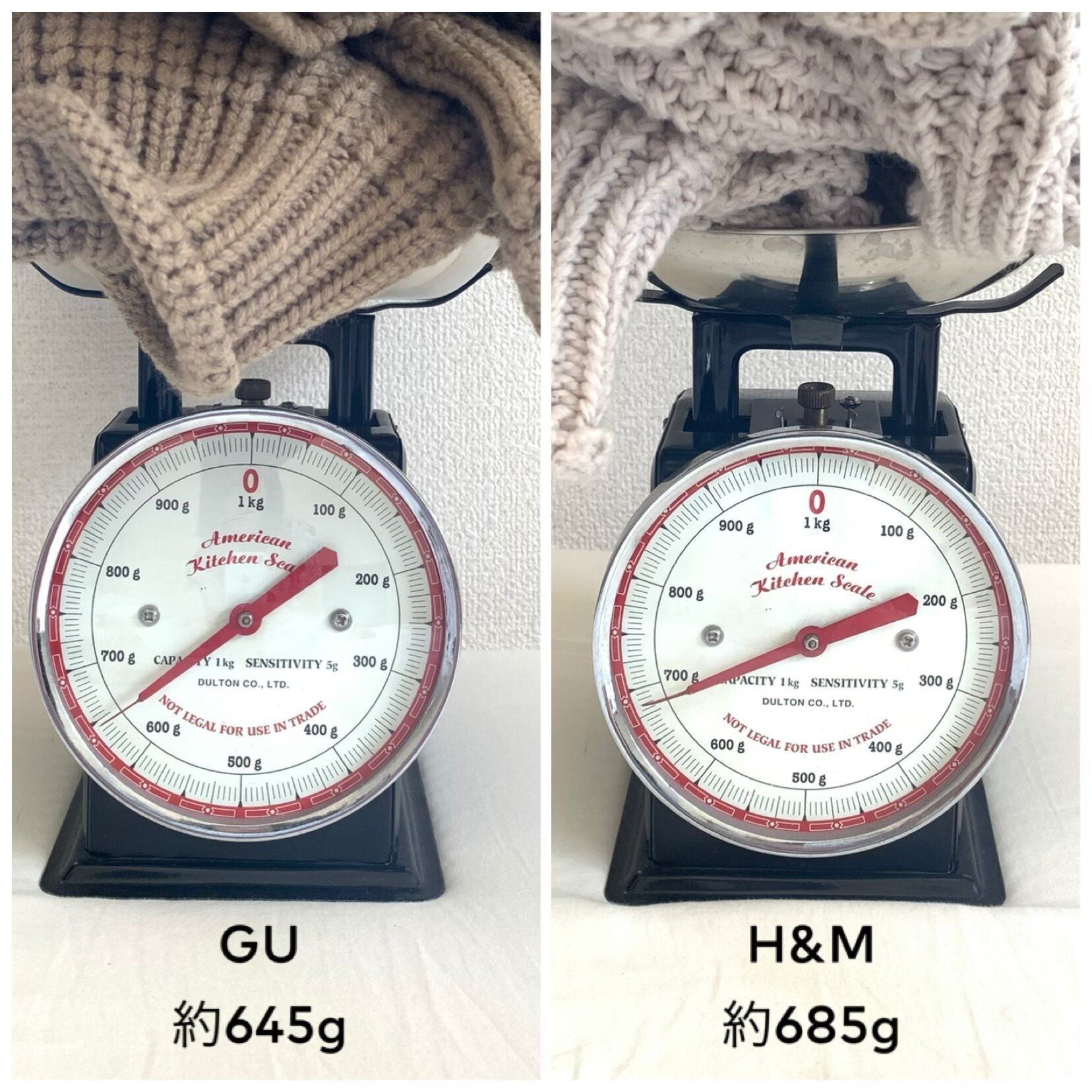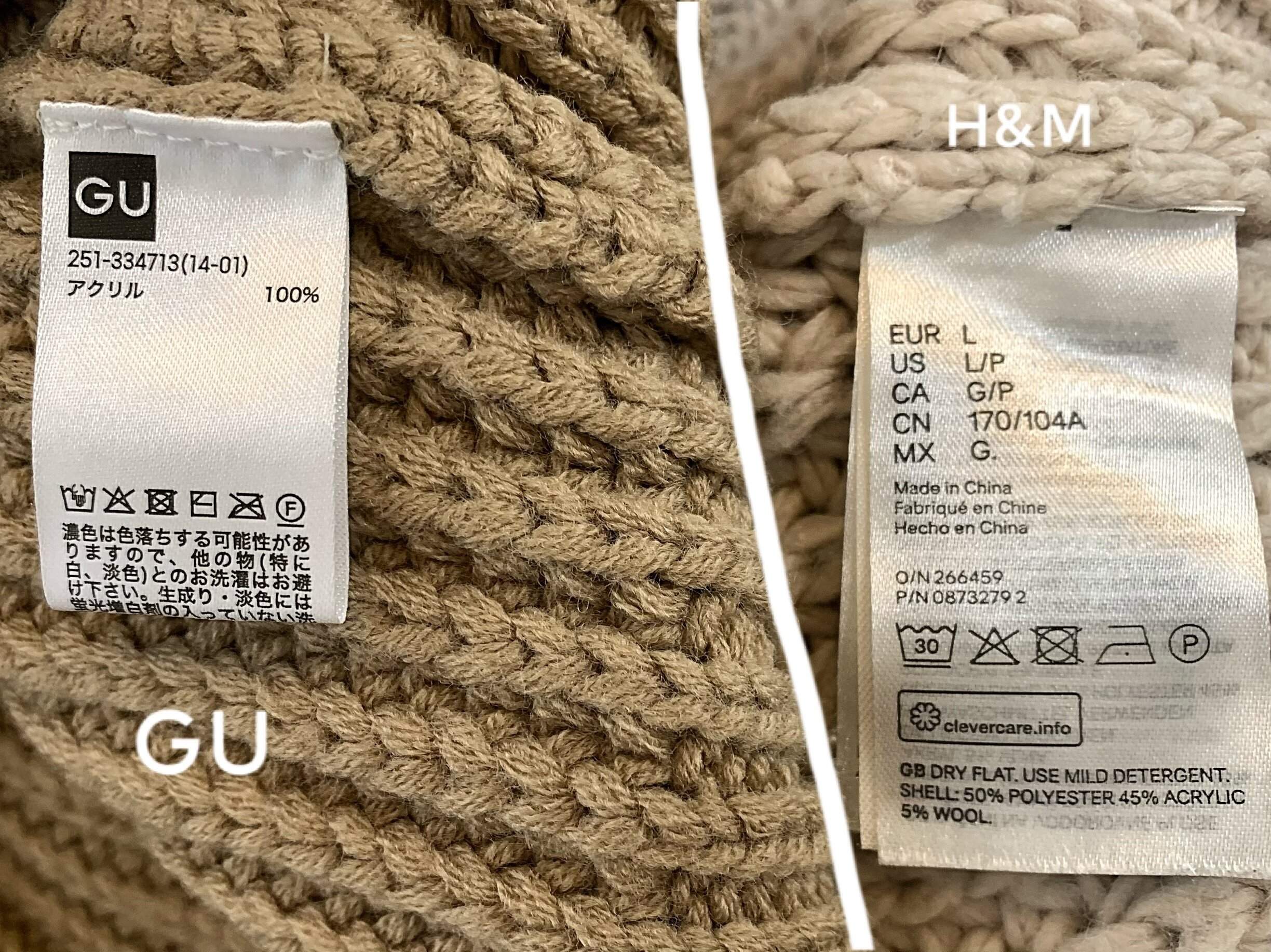 2、素材 … 【GU】アクリル100% / 【H&M】ポリエステル50%・アクリル45%・ウール5%