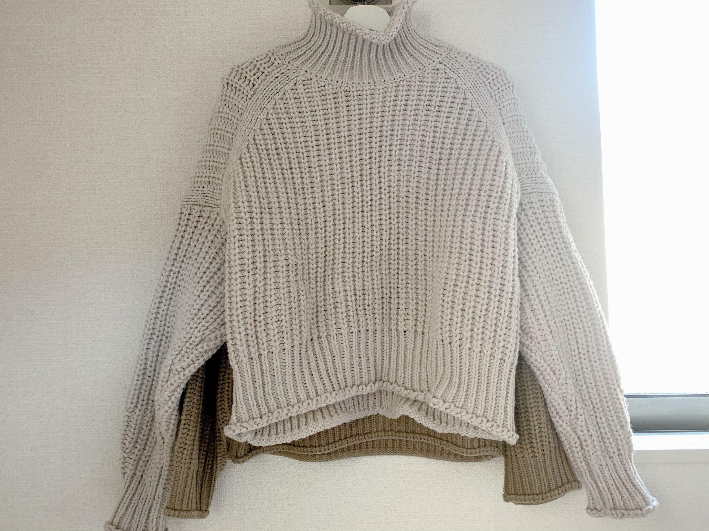 • ※右(H&Mリブニットハイネックセーター)は去年のものです