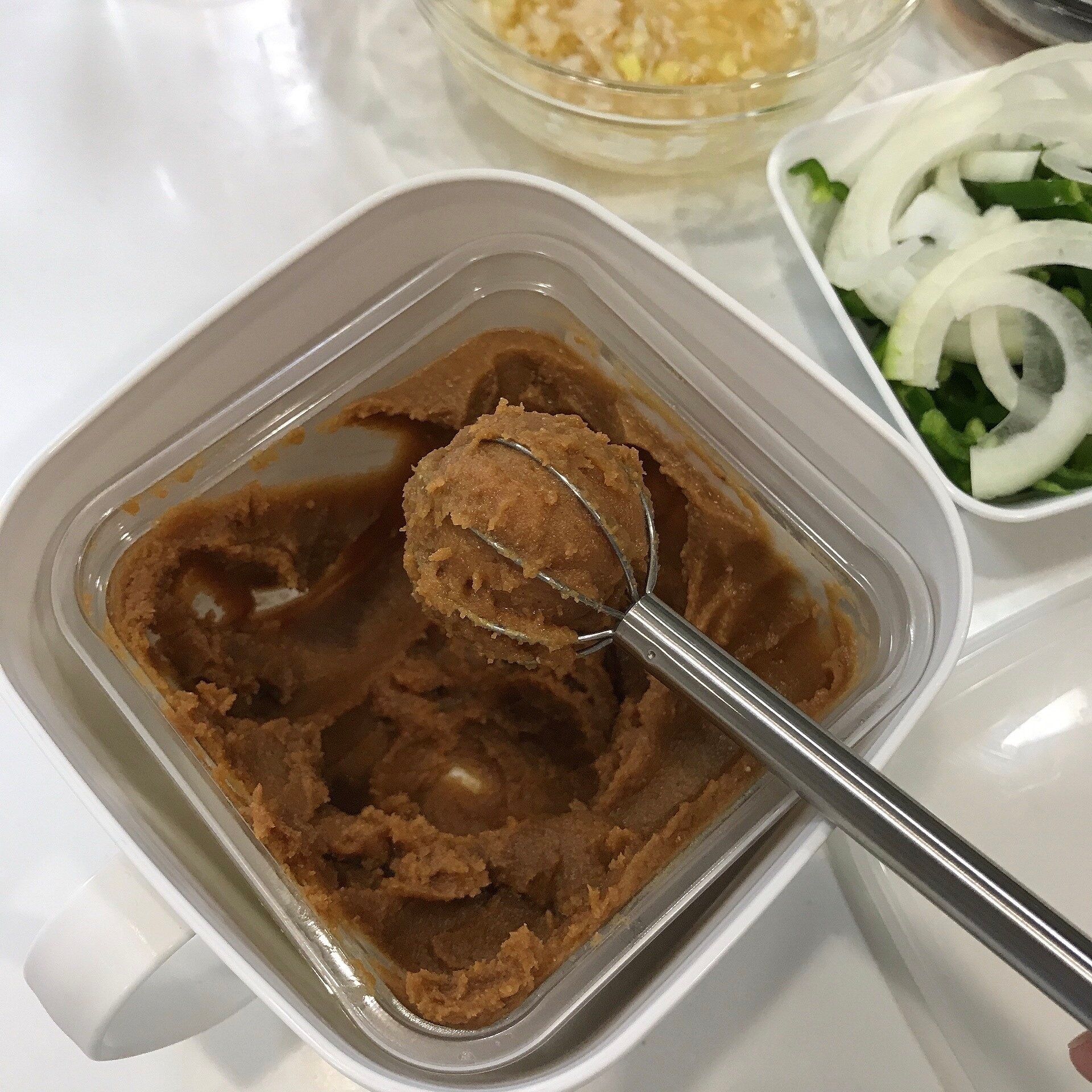 お味噌にマドラーを差して、くるっと回しながら抜き取るだけ。