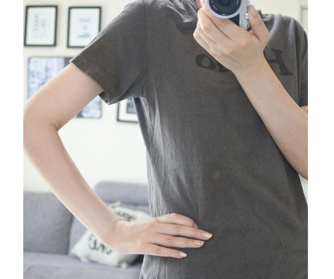 こちら上にチャコールグレーのTシャツを着て1日過ごした後です。