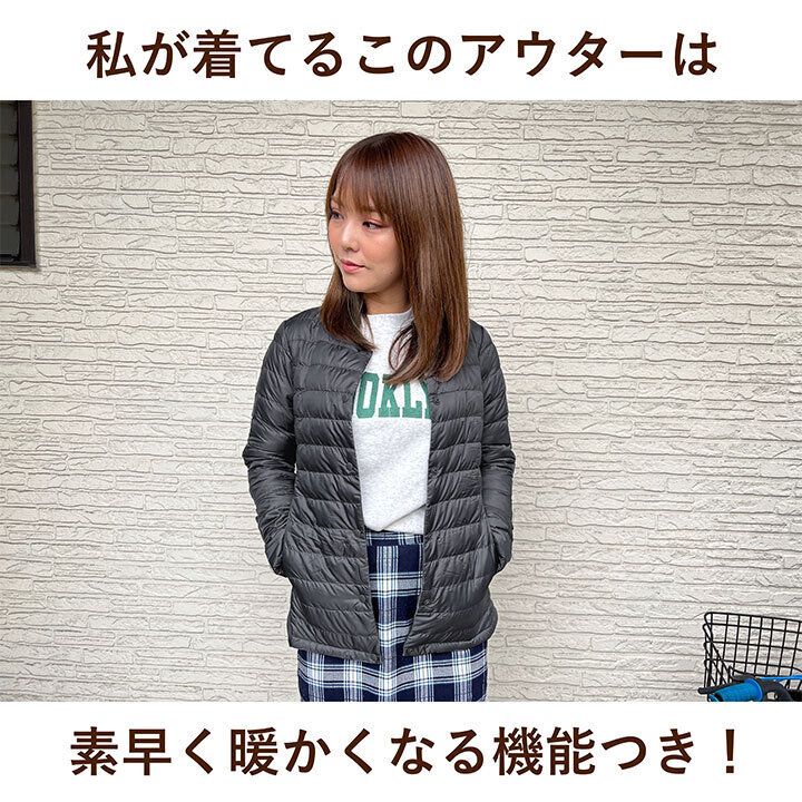 この「ヒートクロス ヘキサゴンダウン」は洗濯可能。今度は、パジャマの上にさっと羽織って朝ごはんの支度など、ルームウエアとしても活用したいとか。