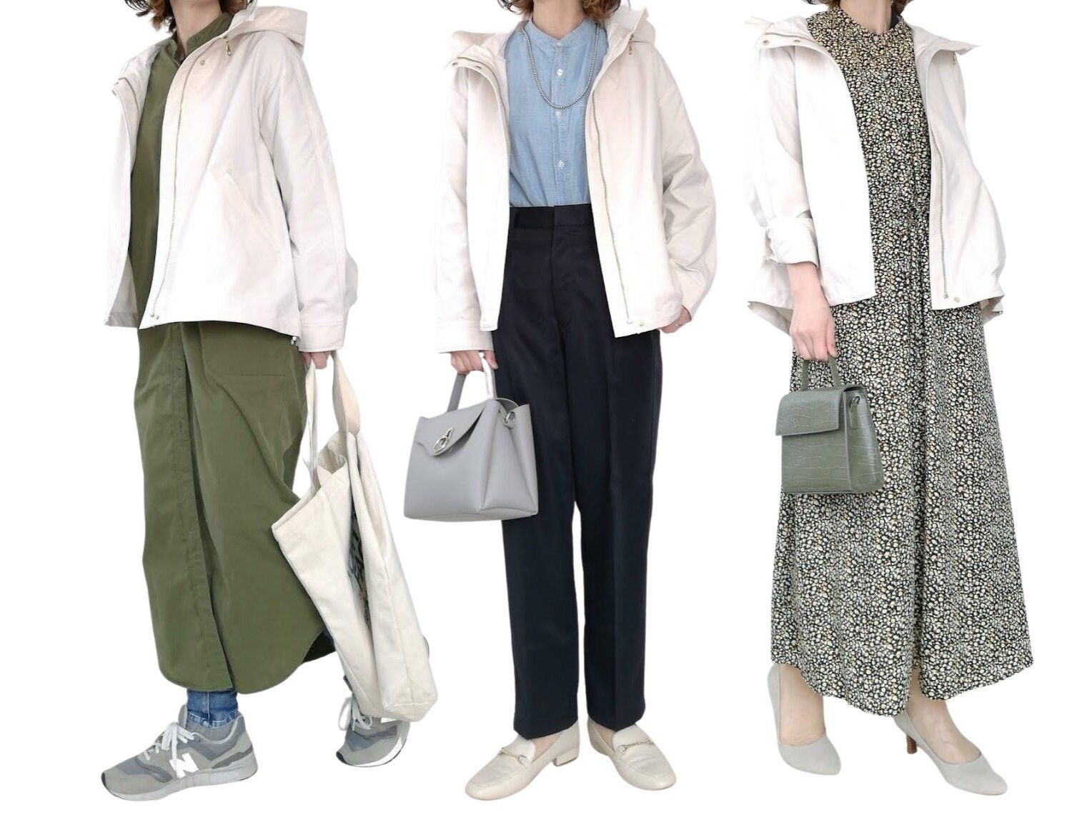 さっと気軽に羽織れるライトアウター、「マウンテンパーカー」。カジュアルかつアウトドアっぽい印象なので、アラフォー世代が着ると「なんだかやぼったく見える……」といったお悩みも。そんなかたのために、アラフォーがおば見えしない着こなし術を提案します。