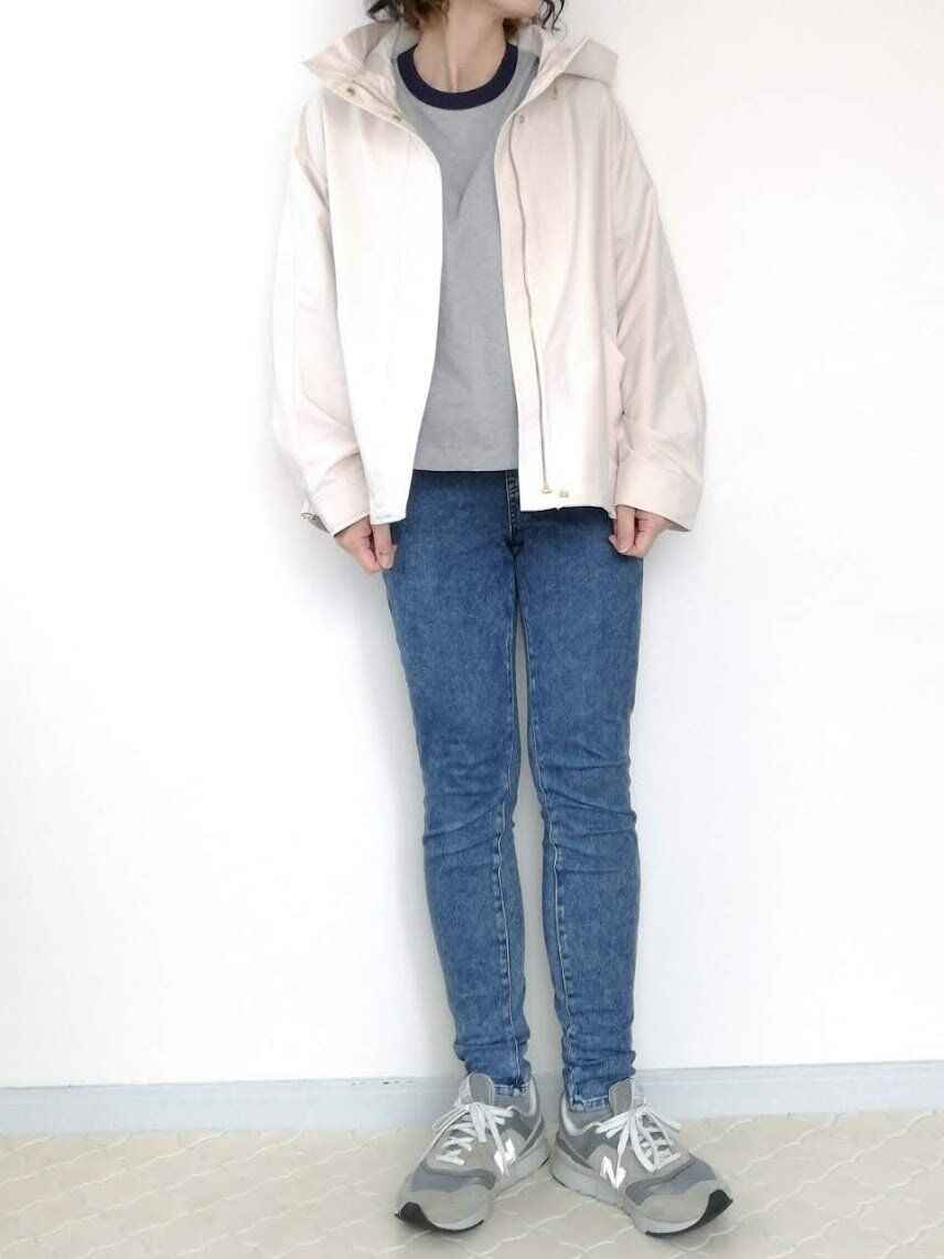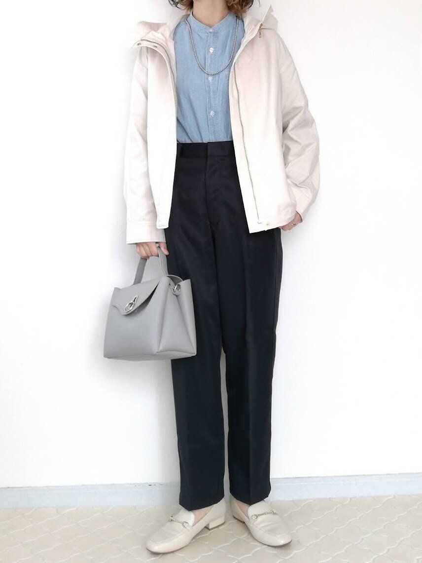 きれいめなジャケットを合わせたくなるコーデに、あえてマウンテンパーカーを着ることで「抜け感」が生まれます。