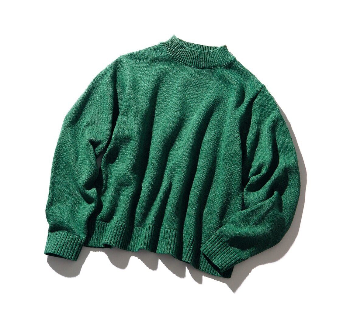 春気分を先取りできる発色のいいグリーンの春ニット。中に防寒インナーを着れば真冬にも対応可能です。「ウォッシャブルモックネックセーター」(グリーン、オフホワイト、ネイビー・全3色)/ユニクロ