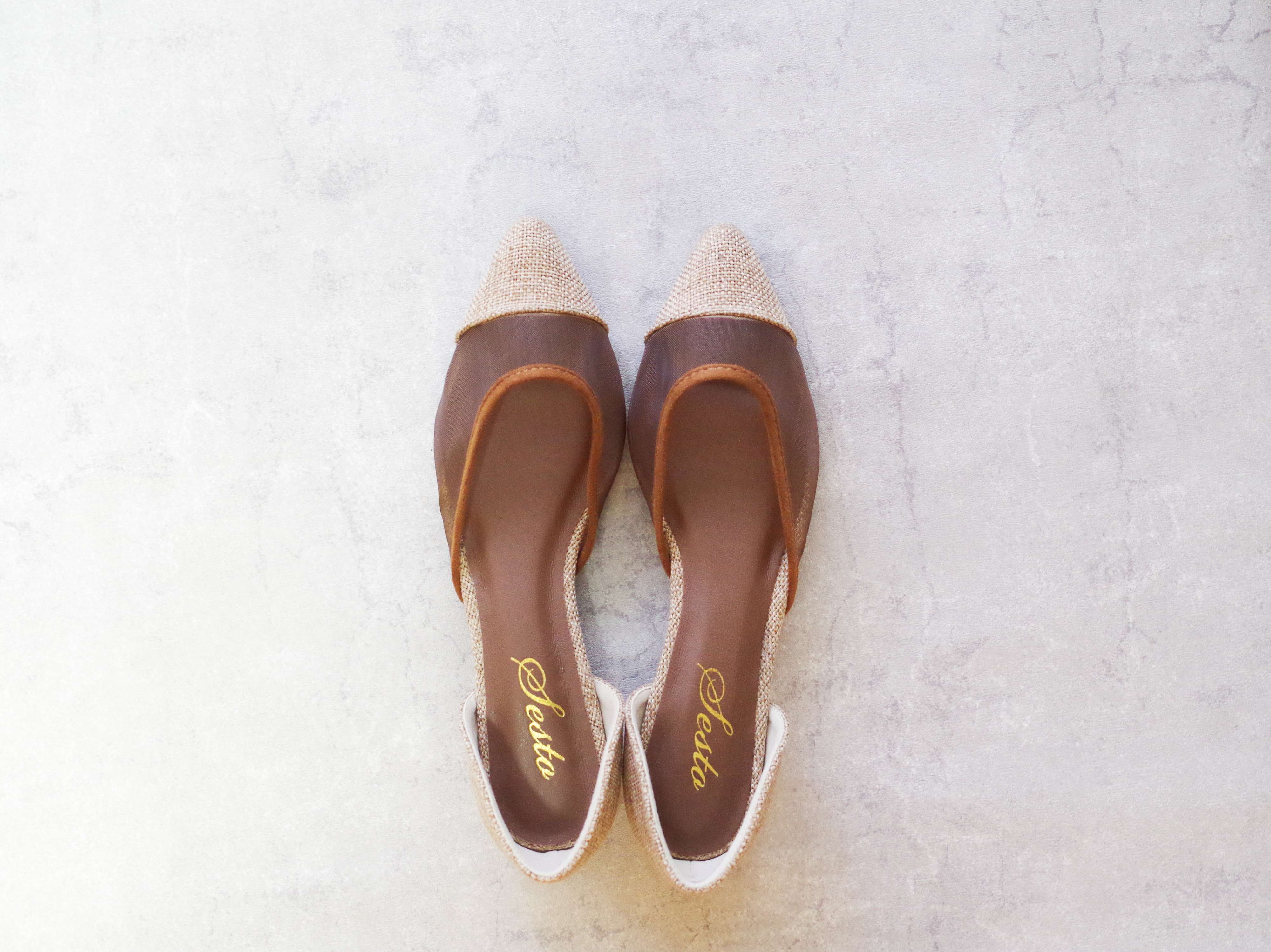 まずご紹介したいのが、プチプラシューズブランド「SESTO(セスト)」のシースルーパンプスです。リネン風のトゥ部分が季節感を誘い、上品にもカジュアルにしたいときもぴったり!色も他にないベージュ色で即決しました。