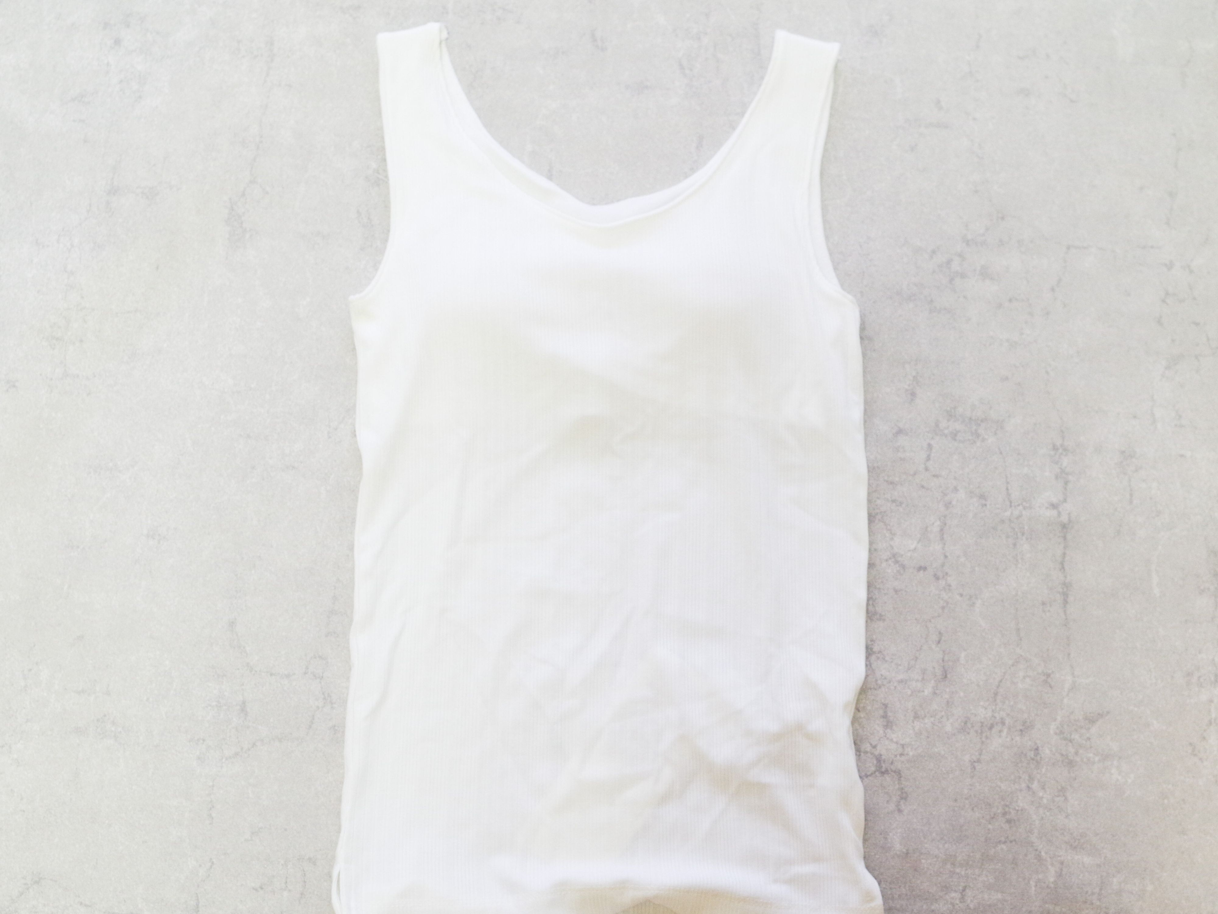 次に紹介したいのは、カップ付きのタンクトップです。神戸レタスは、大人が着やすいプチプラアイテムがたくさん!カップ付きでベーシックなタンクトップのインナーを探していたところ、ランダムリブのデザインが素敵なこちらを発見しました。