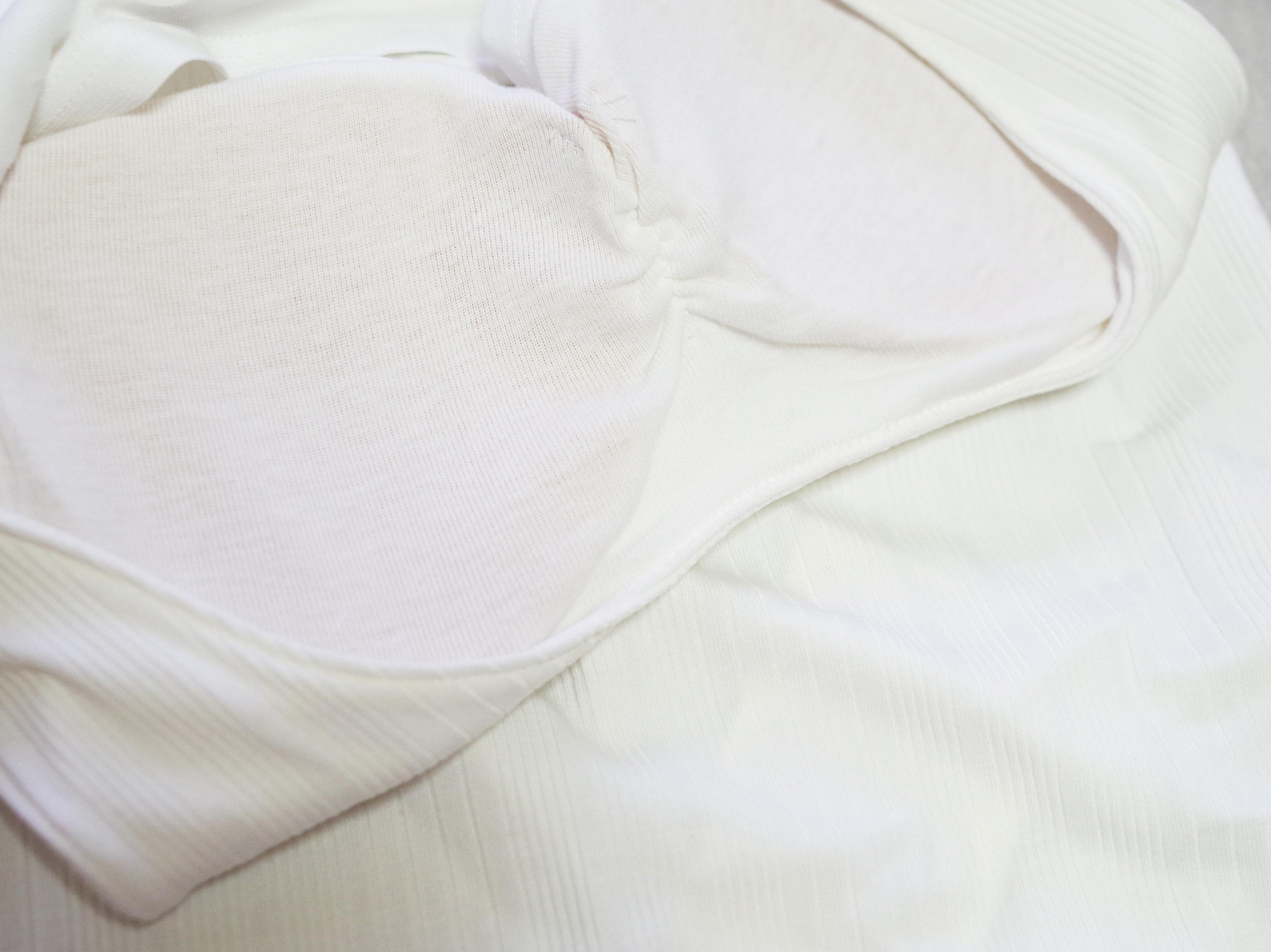 カップは取外しできないので、ズレることもありません。インナー見えしないリブのデザインがかわいいですよね!オフホワイトのカラーも使いやすいのです。