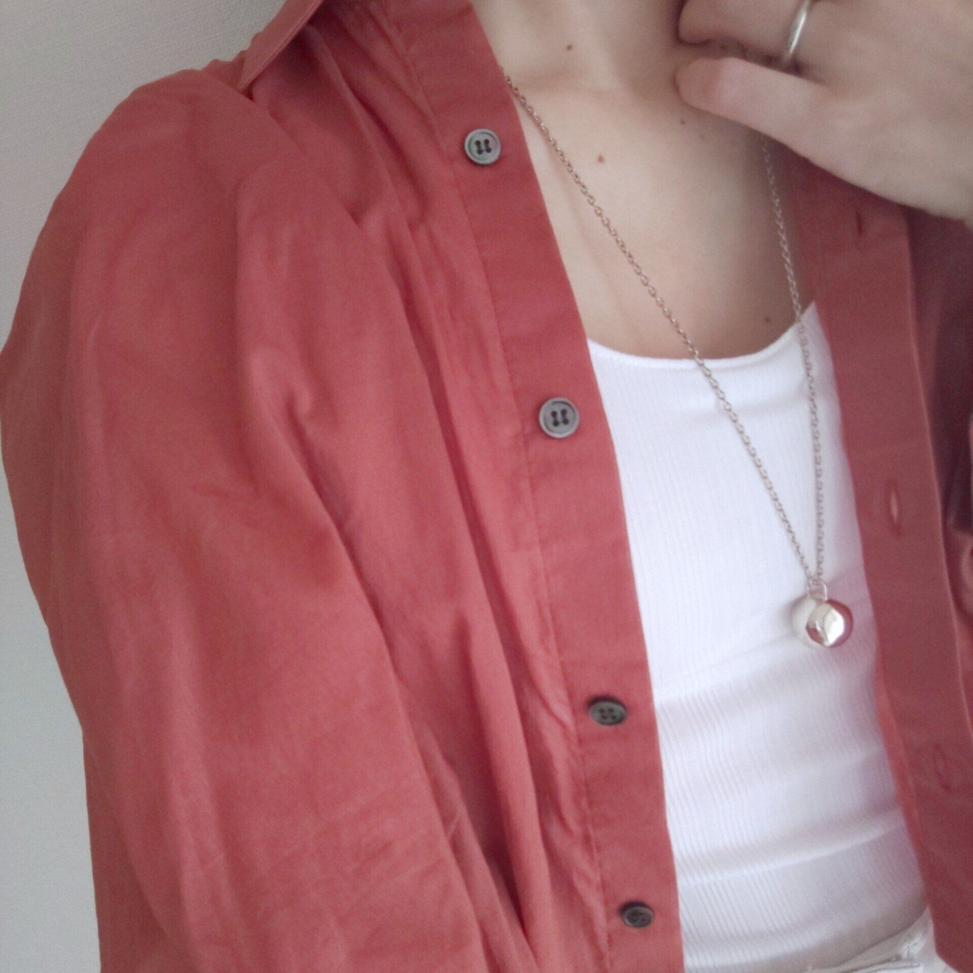 今年は、透け感あるシャツを羽織るときにカップ付きタンクトップを探している人も多そう。適度に胸元は開いていますが、フィット感があり、かがんでも胸元がパカパカしないので、安心できますよ。