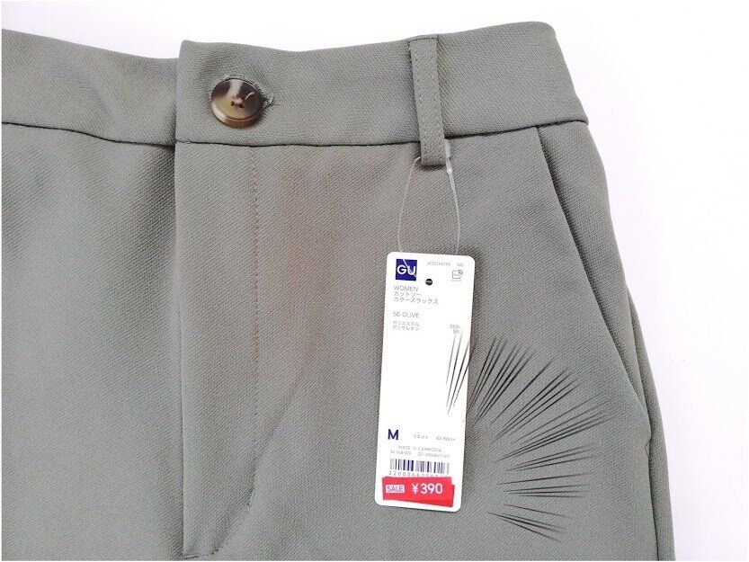 GUの「カットソーカラースラックス」は、お値下げ価格なんと390円。(2021/6/1時点)