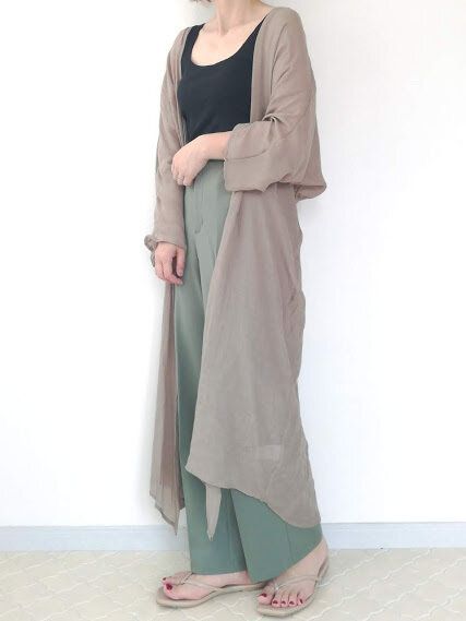 ロングガウンを合わせてゆるっとリラックスモードな着こなしに。