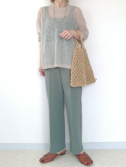 旬なメッシュトップスを合わせたコーデ。
