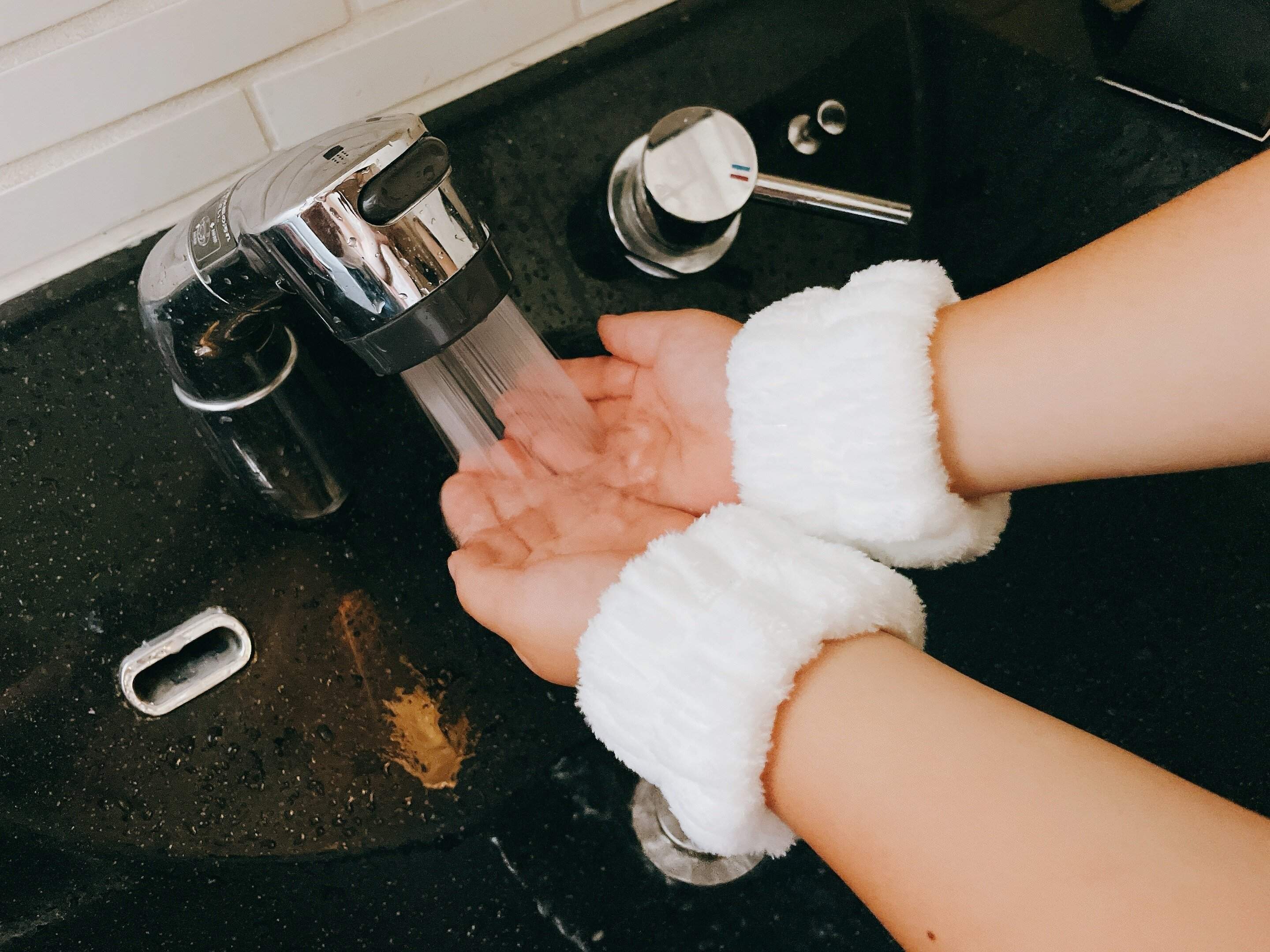 しかし今SNSで話題になっている「リストバンド」は洗顔のときに、水が手首からから伝わって肘のほうに流れてしまい、服や床をぬらしてしまうのを防ぐためのリストバンドです。