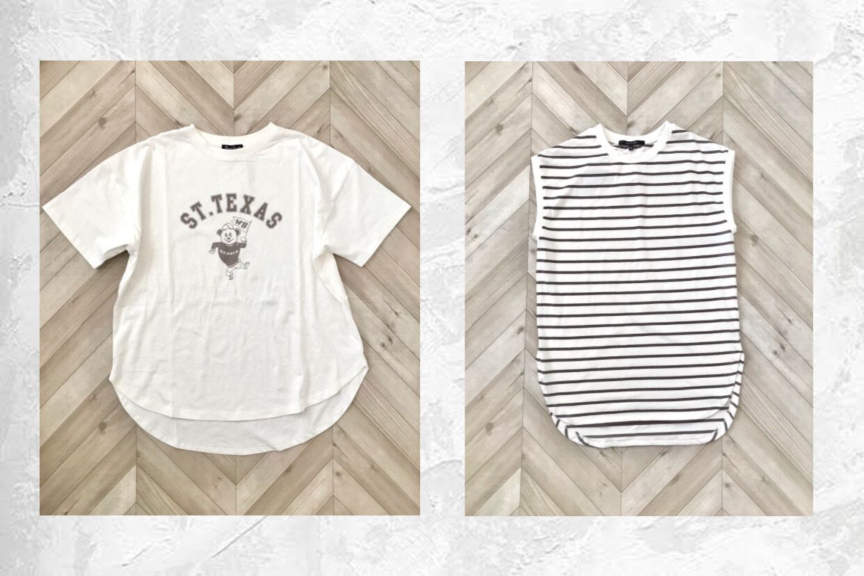 もうひとつは、間違いなく着回しが効くボーダーのノースリーブです。ボーダーの色が黒ではなくくすみブラウンだったのでそこもツボでした。