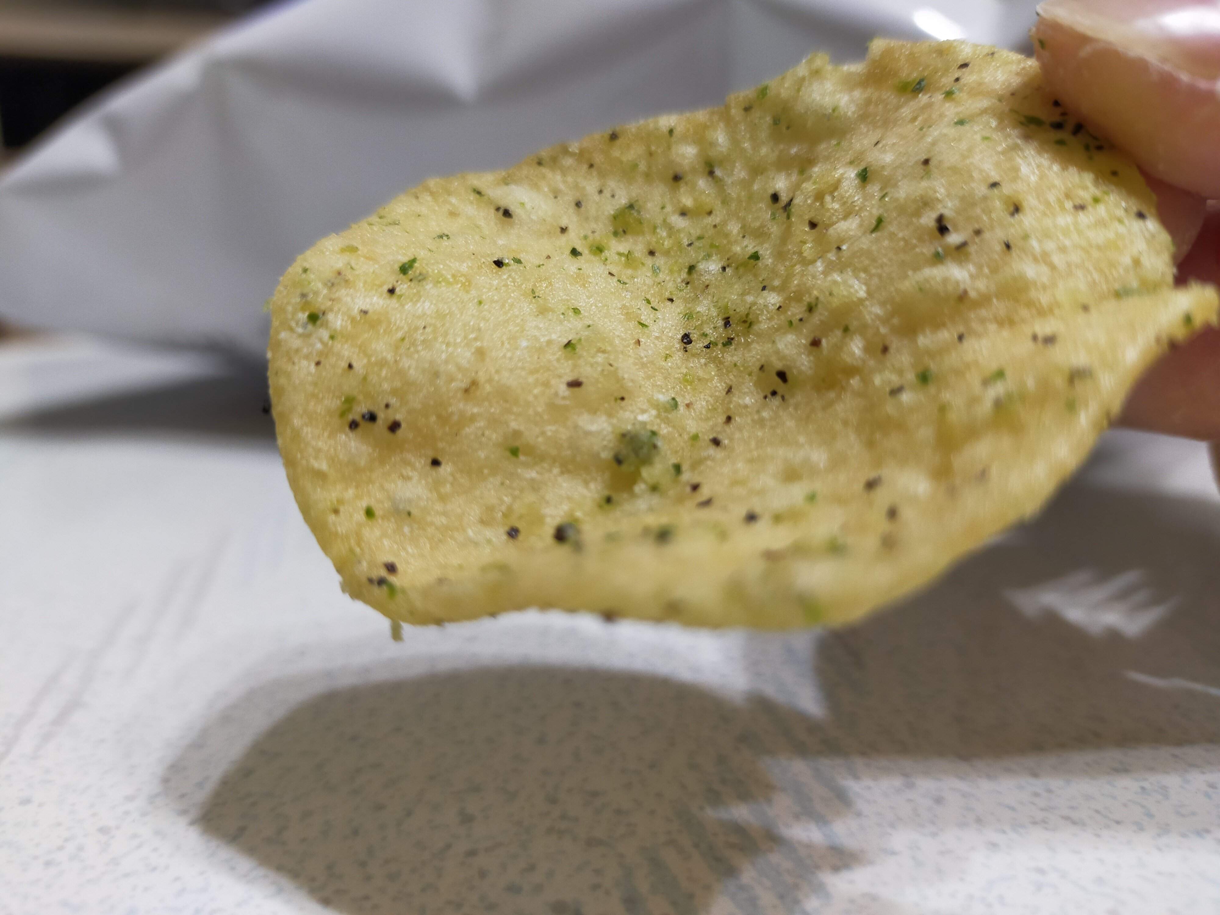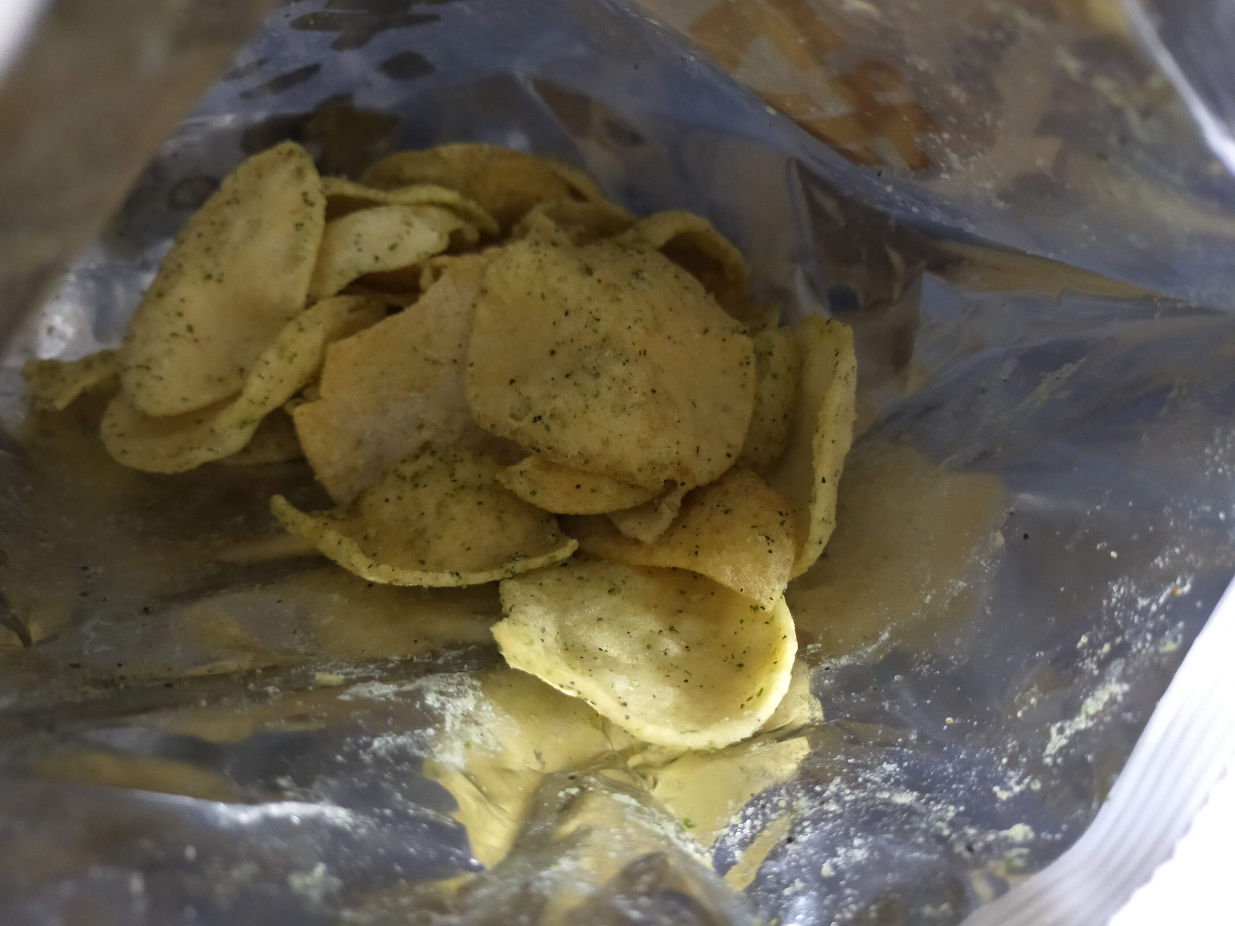 見た目は、ポテトチップスともおせんべいとも言える印象ですが、味はしっかりポテトチップス!じゃがいものみのポテチよりも、歯応えが良く、ザクザク感があります。