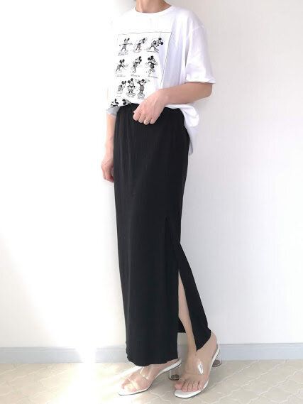 モノトーンでまとめると、プリントTも大人っぽい印象になって◎