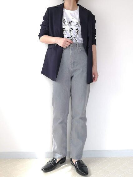 ジャケットのインナーとして、プリント部分をさりげなくアピール。きちんと感の強いジャケットも、プリントTを合わせることでほどよくカジュアルダウン。ふだん着として、ジャケットコーデを楽しんでみて。