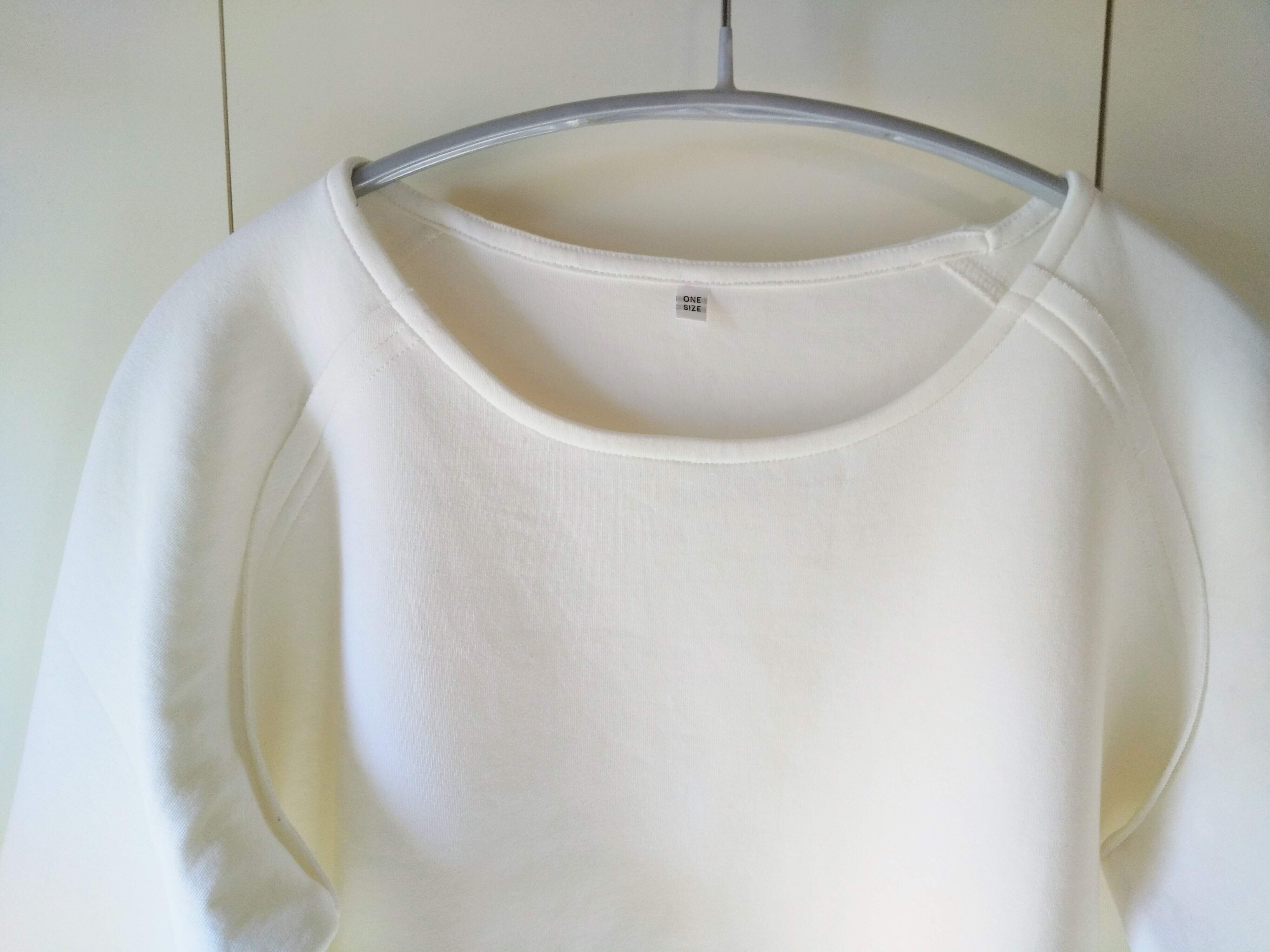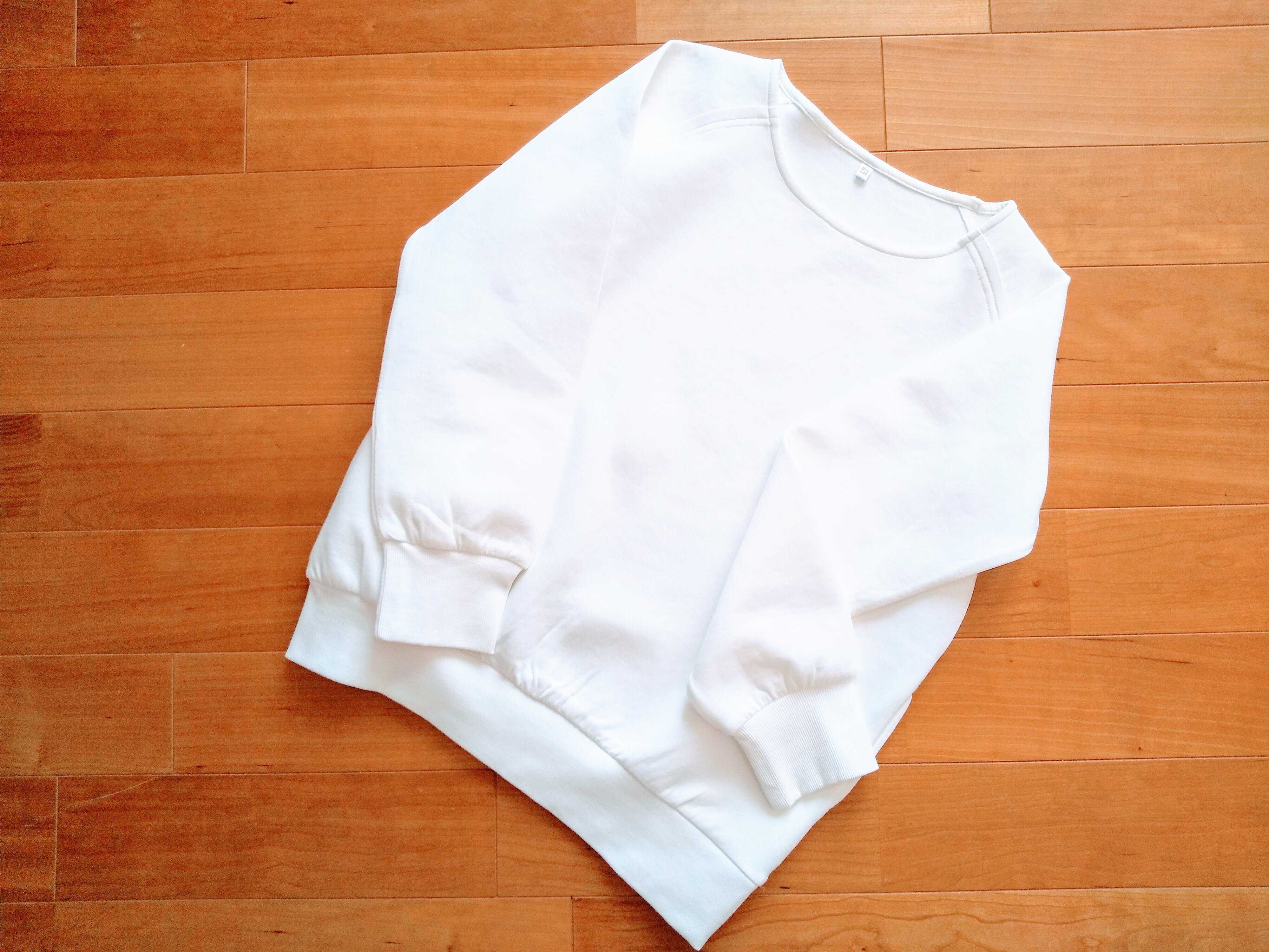 白スウェットに黒パンツを合わせると体操服っぽくなってしまうこともあるのですが、このスウェットは大丈夫でした。ラクチンだけど、ダラしなく見えない大人のカジュアルスタイルを作ってくれます。これが普通のスウェットだと、なかなか難しいんです!
