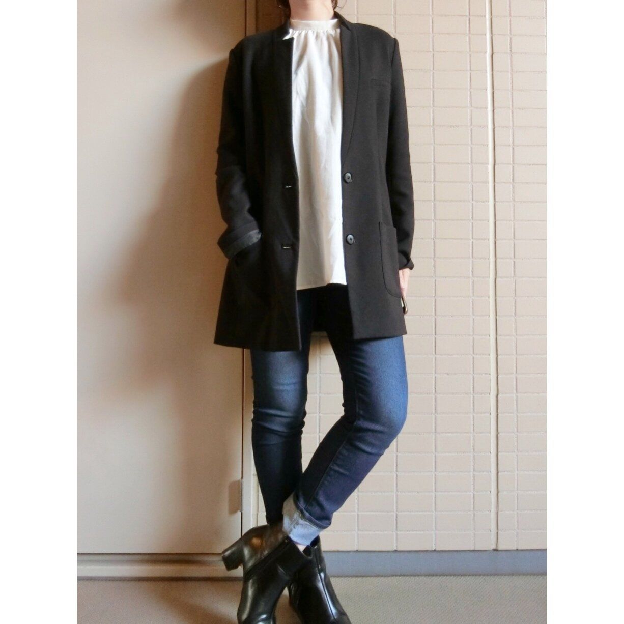 ジャケットを合わせても、スキニーデニムならカジュアルダウンしてくれて、そこまで堅苦しい印象にならず、すっきりまとまりこちらも着やせ効果抜群!