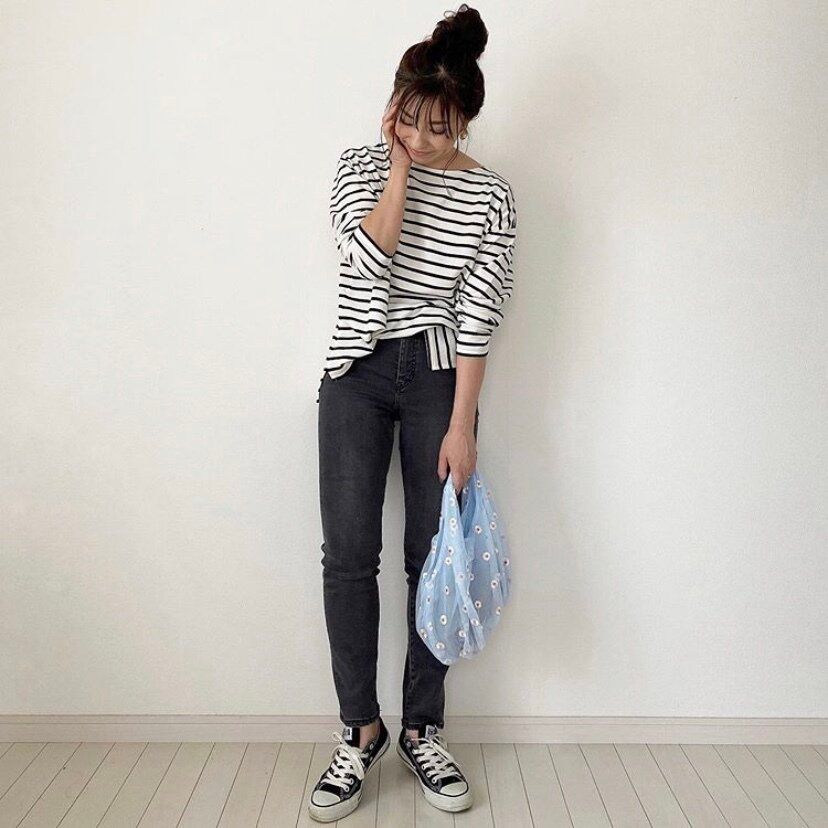 ボーダーTシャツに合わせた定番のカジュアルコーデ!