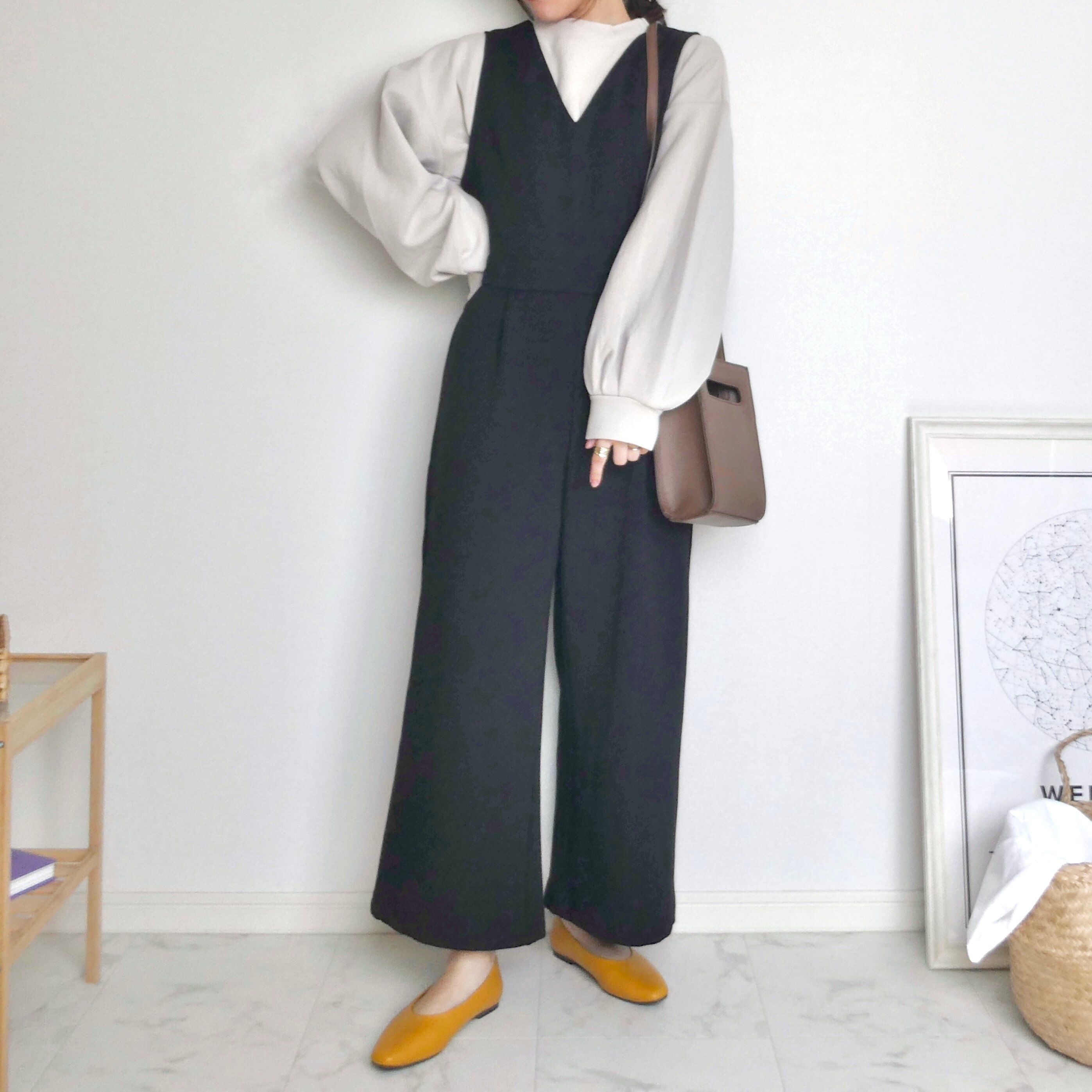 シンプルなサロペットと合わせれば、ぽわんとしたボリューム感のある袖がいいアクセントになっておすすめ◎。
