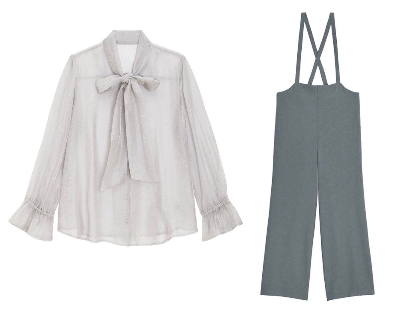 トレンドのシアー素材を使用したボウタイブラウス。コーディネート次第で、フェミニンな雰囲気にも、今っぽい雰囲気にもなる優れものです。(GUプレス橋本さん)