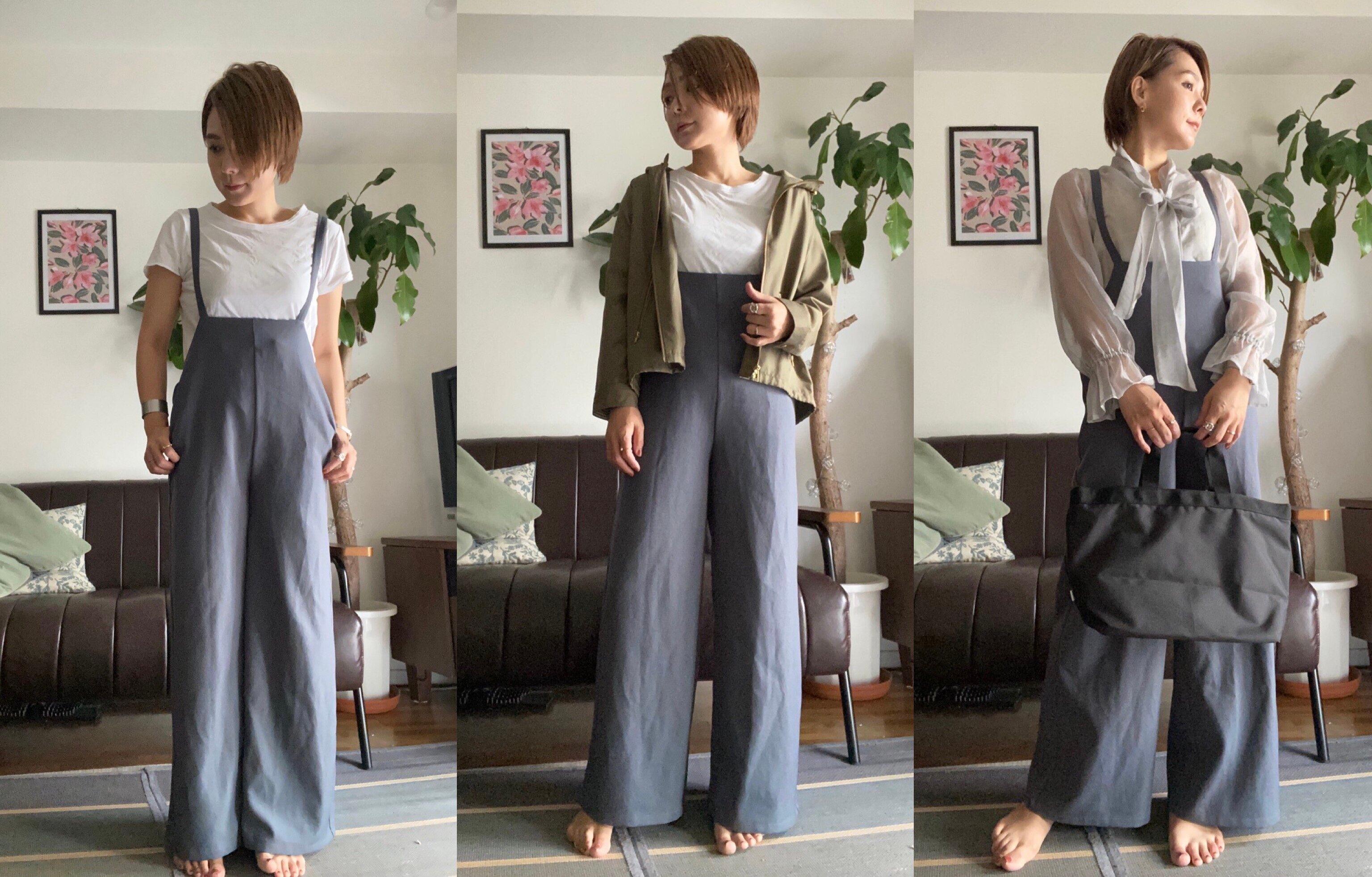 エプロンタイプのサロペットパンツ。単調になりがちなコーディネートに、着るだけでこなれ感を演出してくれます。やわらかなジョーゼット素材で着心地も良いです。(GUプレス橋本さん)