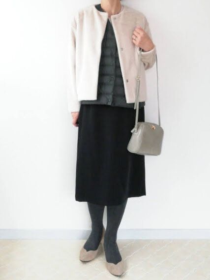 こんな風に、シンプルなロングワンピースに合わせている人をわりとよく見かけませんか?部屋着にちゃんちゃんこを羽織ったような感じが、オバ見え危険信号!