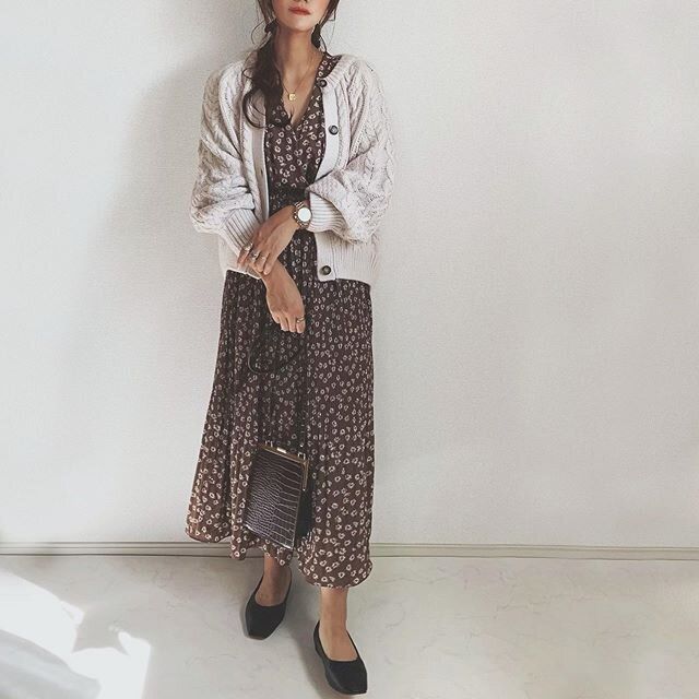花柄ワンピースに合わせた大人可愛い着こなし。