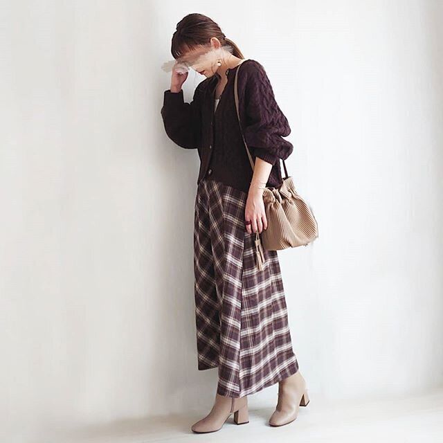 チェックスカートが秋らしい、大人可愛い着こなし。