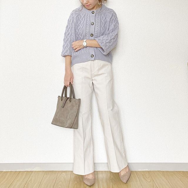 GUの「ケーブルコクーンカーディガン」ナチュラルを使ったコーデ。