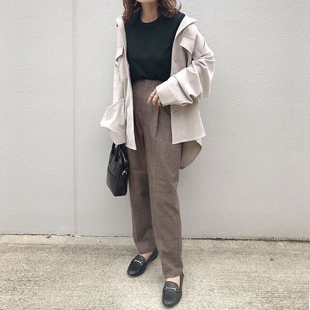 チェックパンツに合わせるとぐっと秋らしい着こなしに。