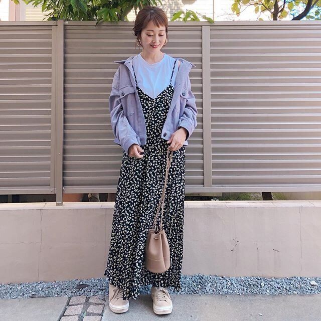 レオパード柄キャミワンピースに羽織って、トレンド感たっぷりな大人カジュアルに。