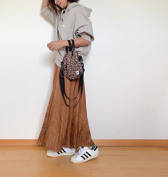 コツは首元や、手首など肌見せの場所を作って、「程よい抜け感」を出したり、「差し色」や「スニーカー」をプラスして、カジュアルな仕上がりに!