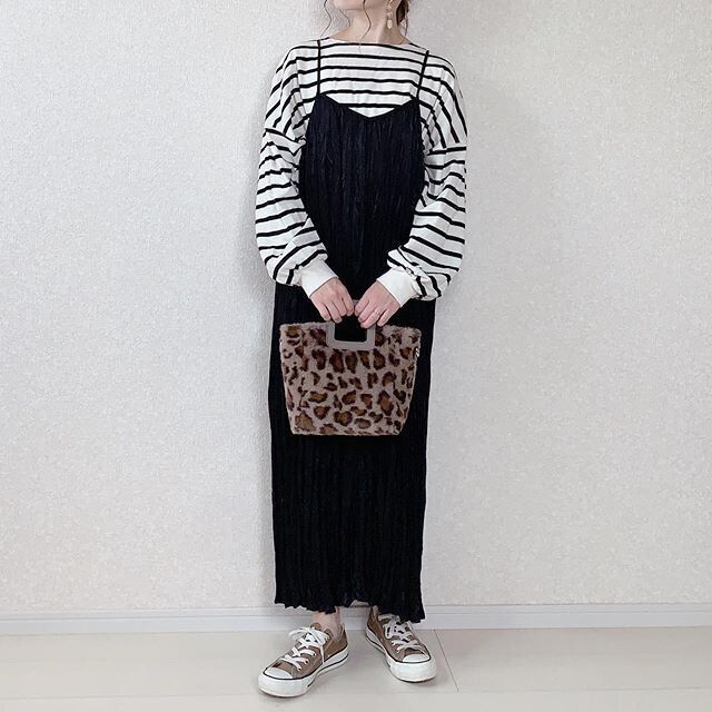 クリンクルキャミワンピースにボーダーロンT(990円)をレイヤード。
