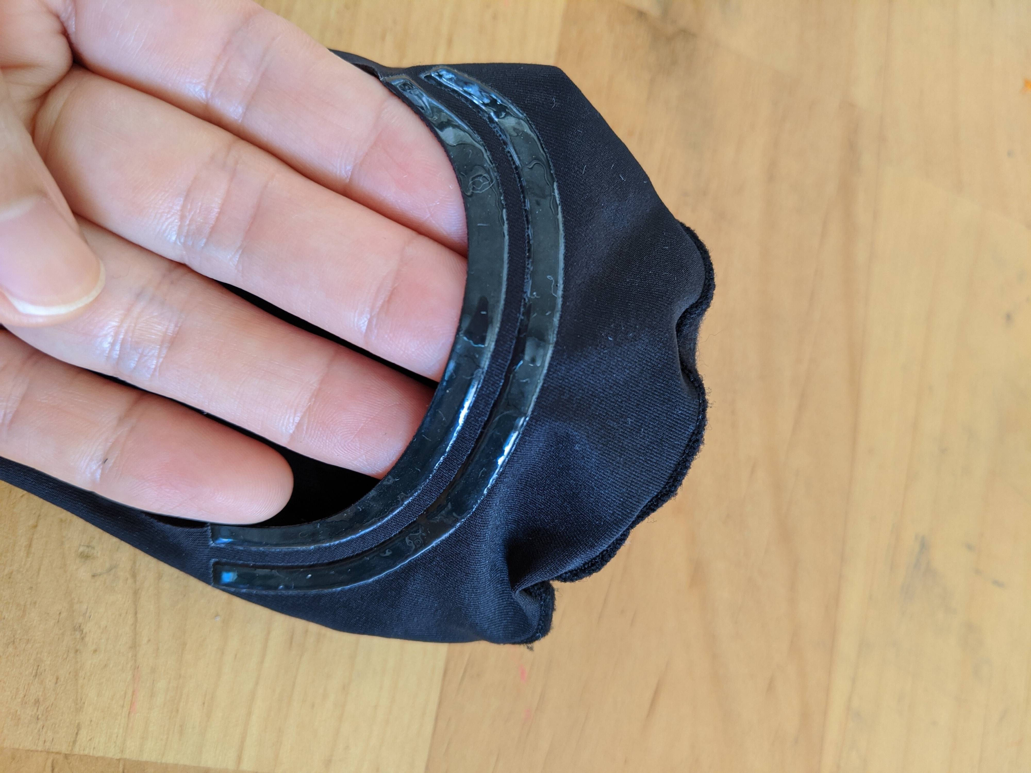 履いてみると、シリコン部分がぴっちりくっつくのが感じられます。これはよいのでは、と期待値が上がりますが、100均のフットカバーも靴を履くまでは何の問題もないのです。靴を履いてからが勝負。
