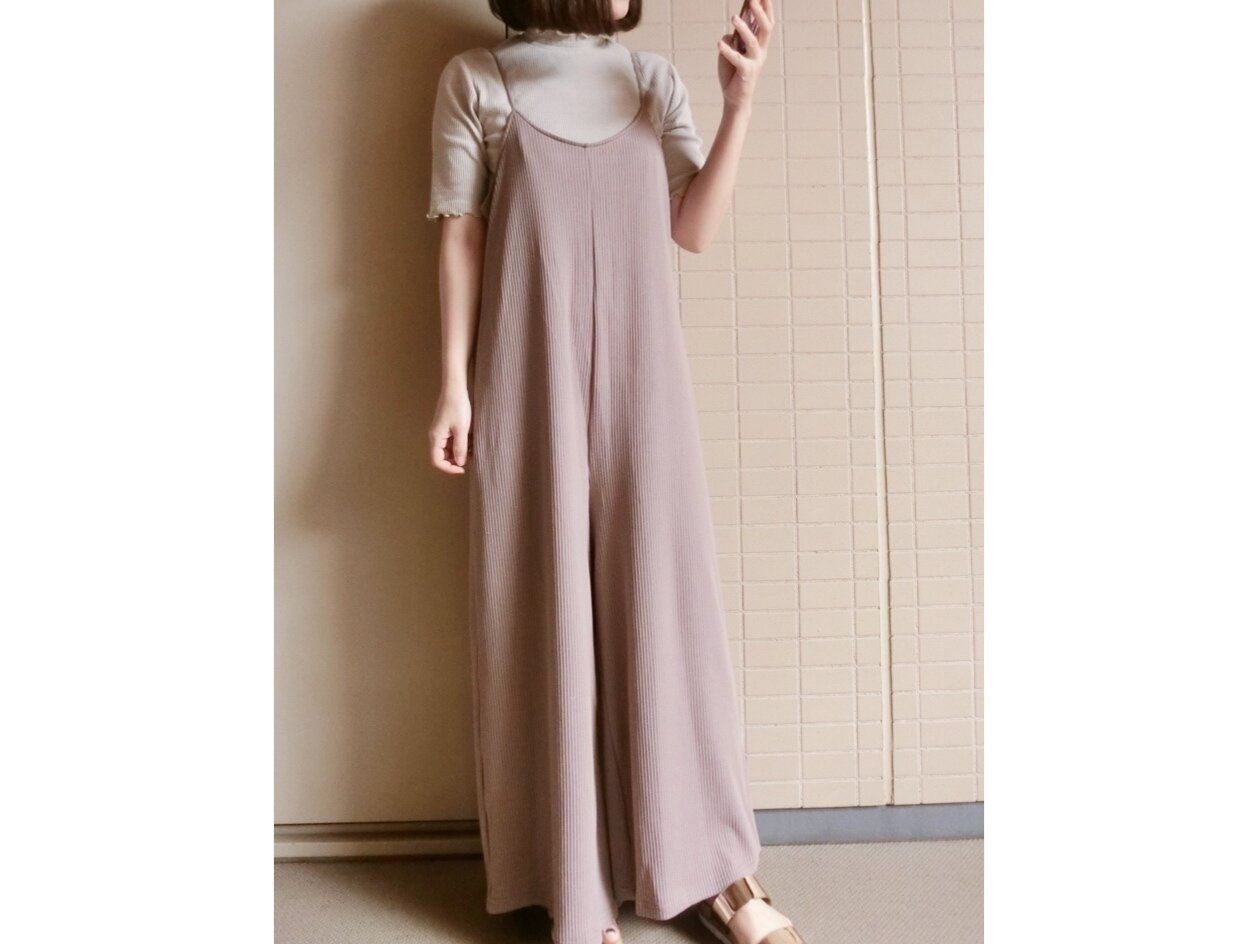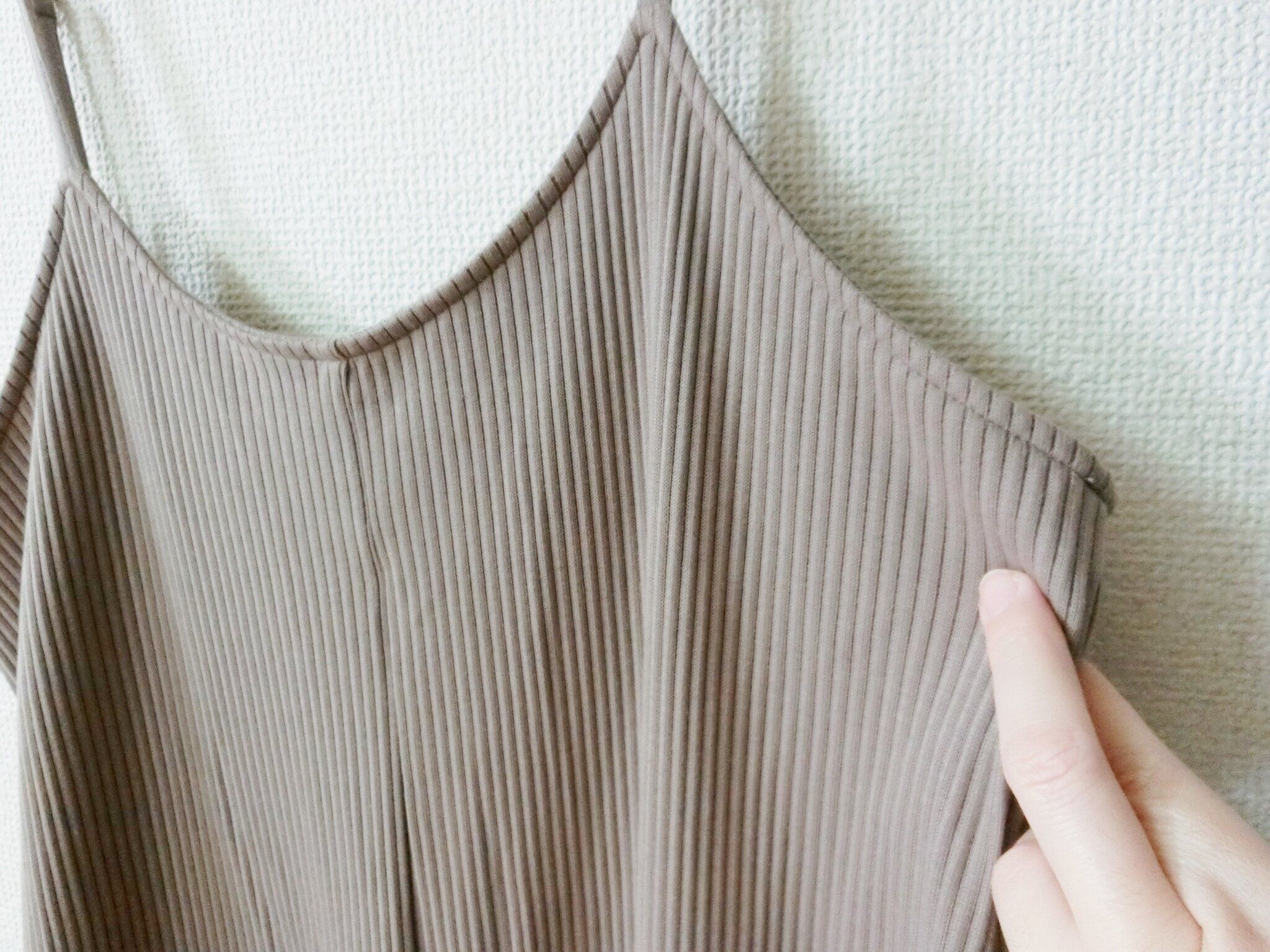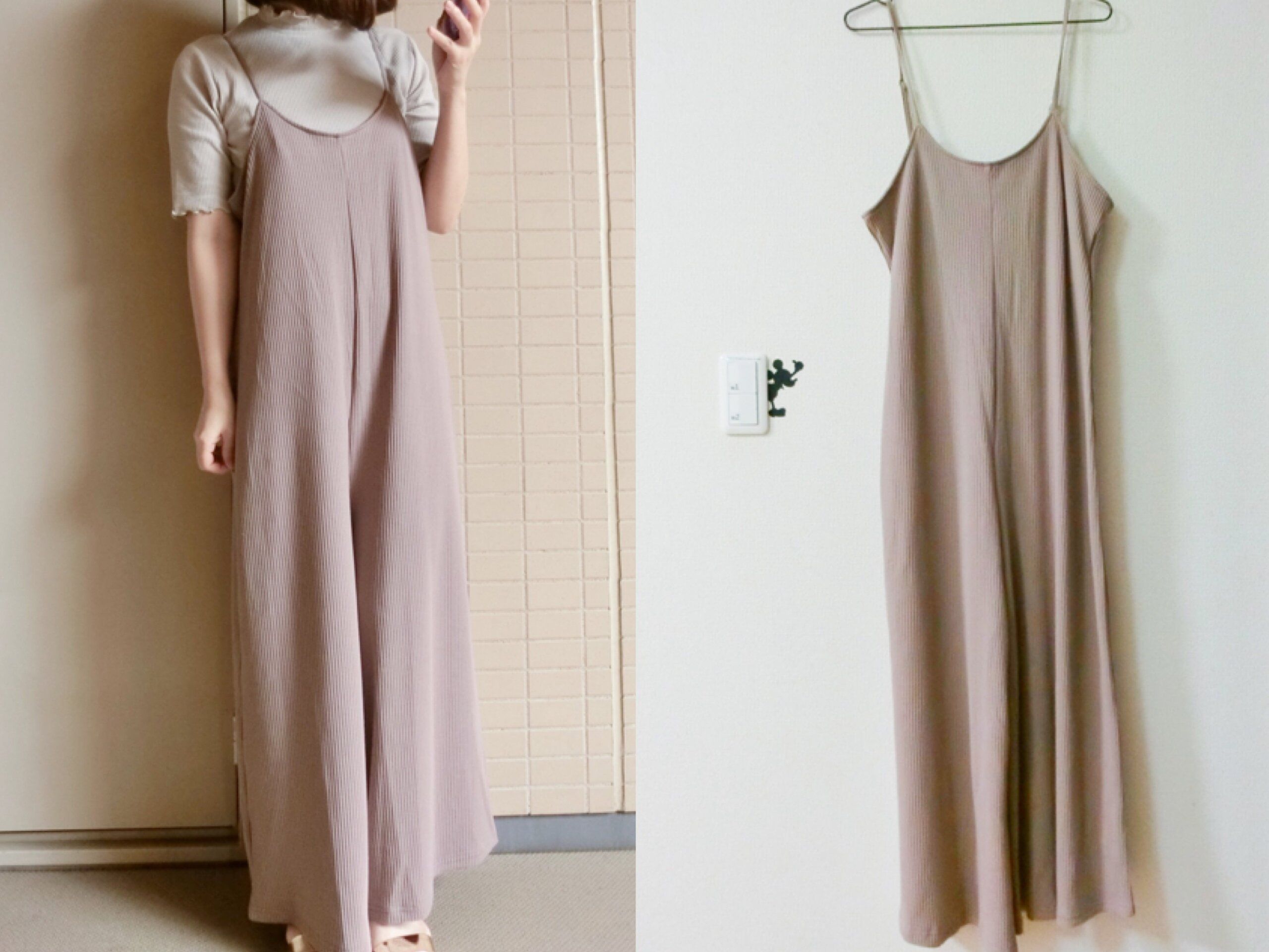 2020年はこのキャミソールタイプのワンピースやオールインワンがいろんなブランドから発売されていますが、しまむらならなんと1500円でおつりがくるプチプライスでゲットできました。