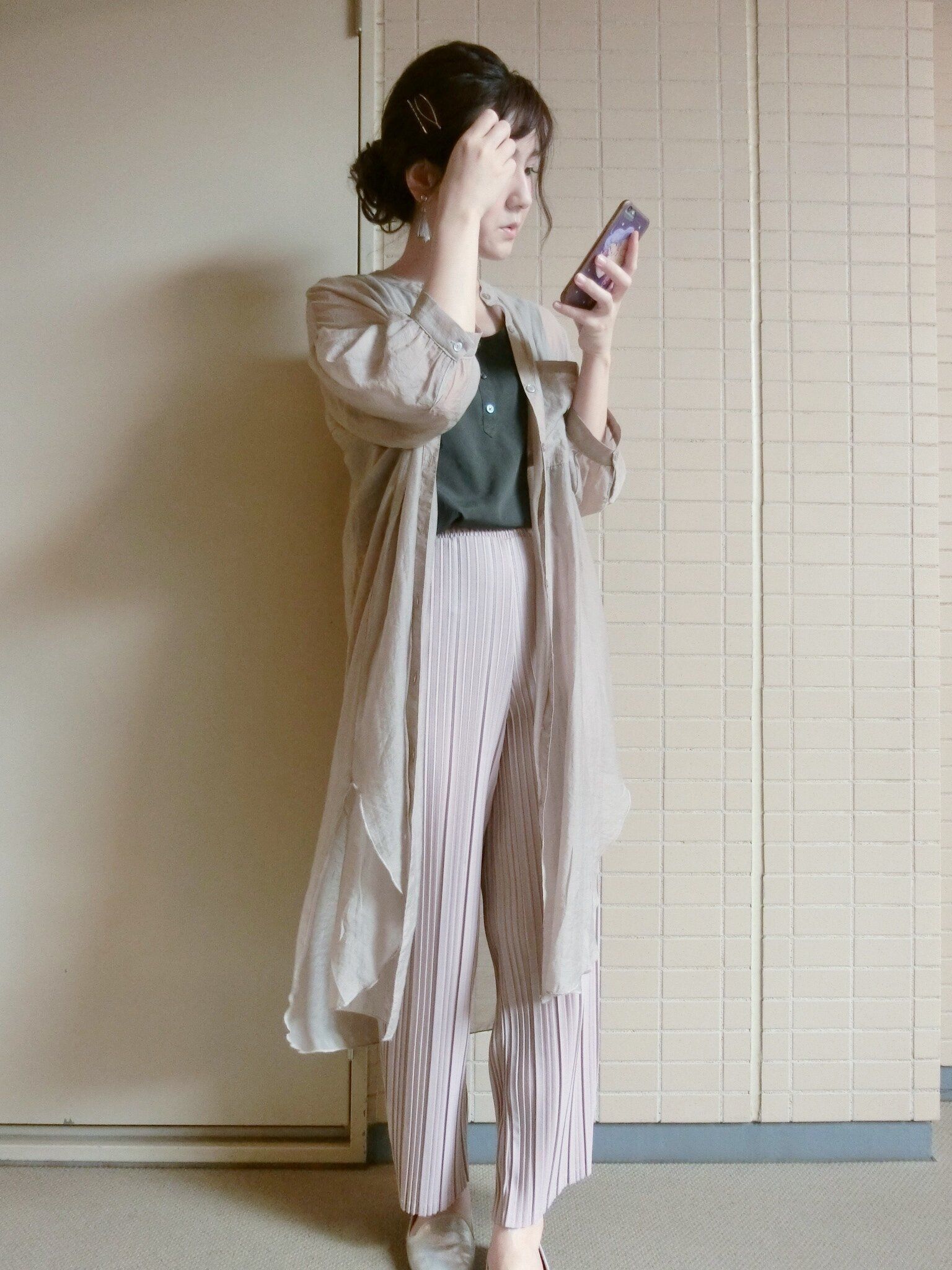 他にもカラーはあったのですが、アラフォー女子は落ち着いた印象で手持ちのアイテムとも合わせやすい渋茶がおすすめ!