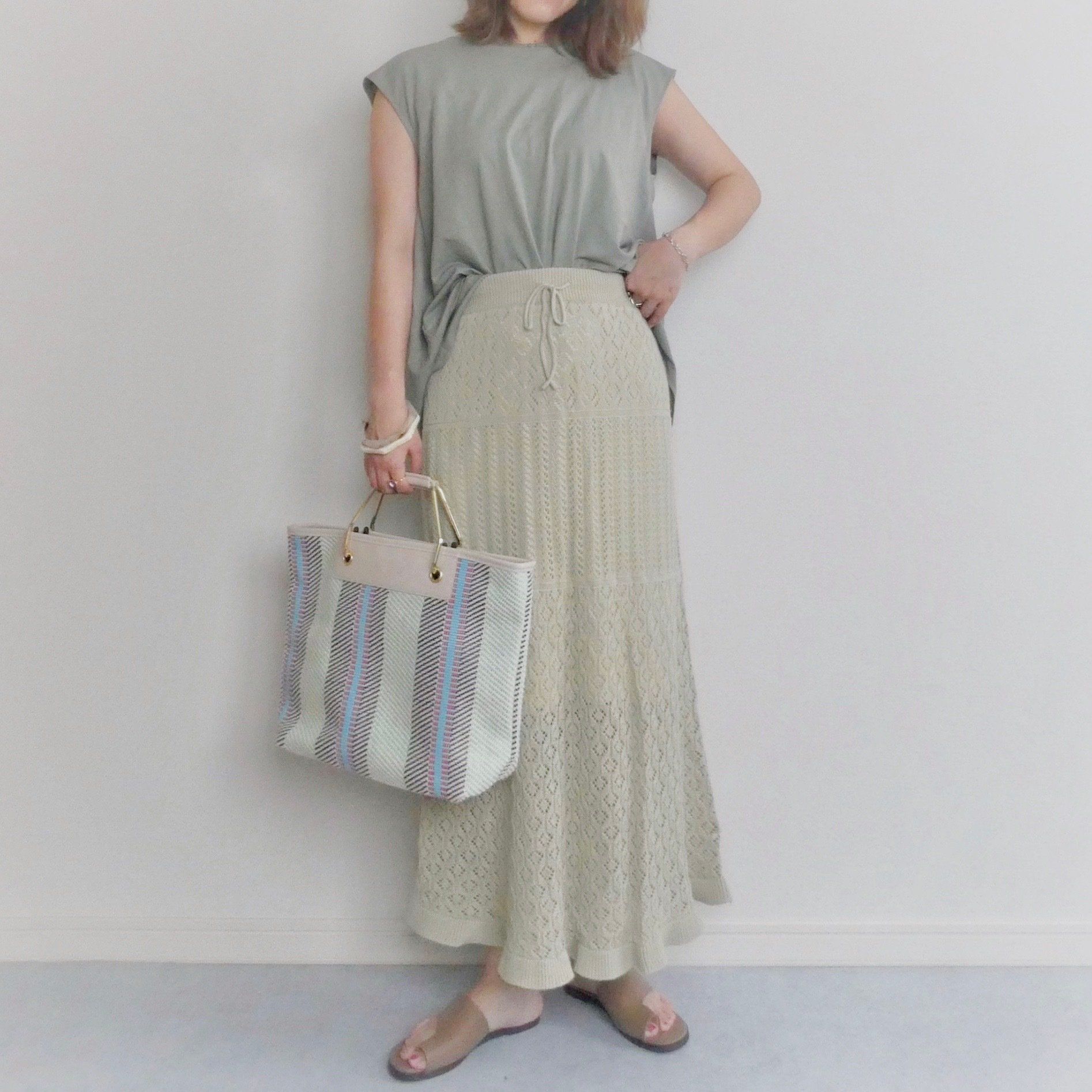 ウエストインせずあえてAラインをサラッと着るのが