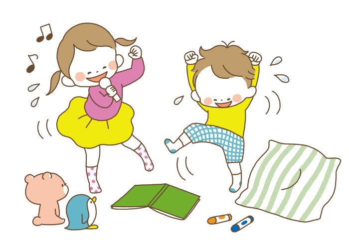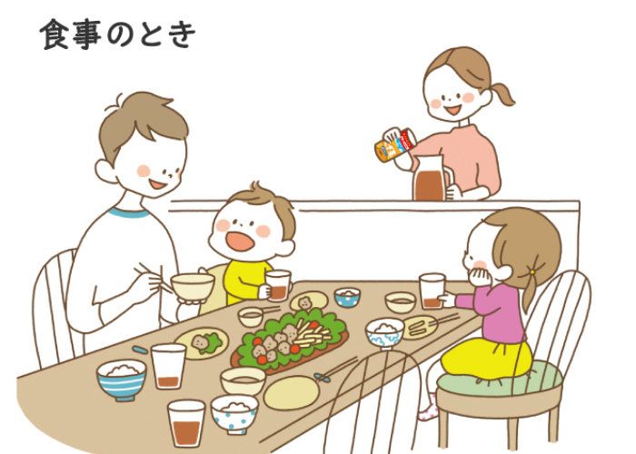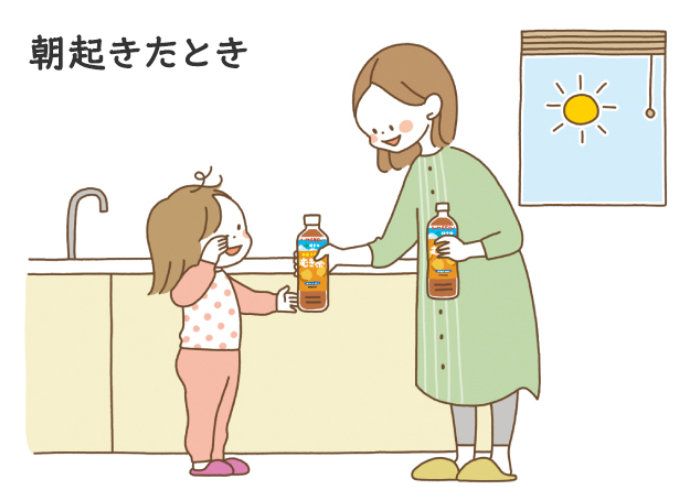 室内で過ごす時間が多いときは家族みんなでできるエクササイズを踊ってみるなど、少し汗ばむ程度の運動をしてみてはいかがでしょう。カラダを動かすことは気分転換にもなりますし、暑熱順化対策にもなるので一石二鳥。お子さんが運動や遊びに夢中になって汗をかいたときは、ママやパパたちがしっかり水分、ミネラル補給をするようにサポートしてあげましょう。