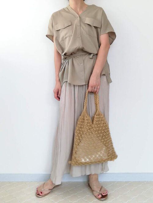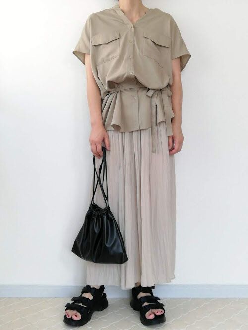 ロングスカートは、ウエストマークするとバランスがよくなりスタイルアップ効果も!