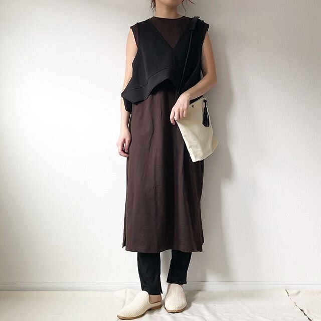 シンプルなワンピースだからこそ、ベストのレイヤードもキマります!