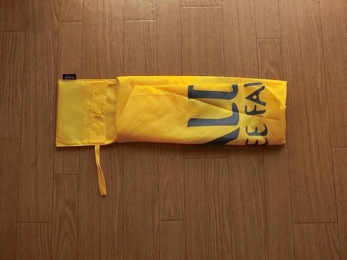 ポリエステル製で軽くて薄く、折りたたんだ大きさは手のひらサイズです。