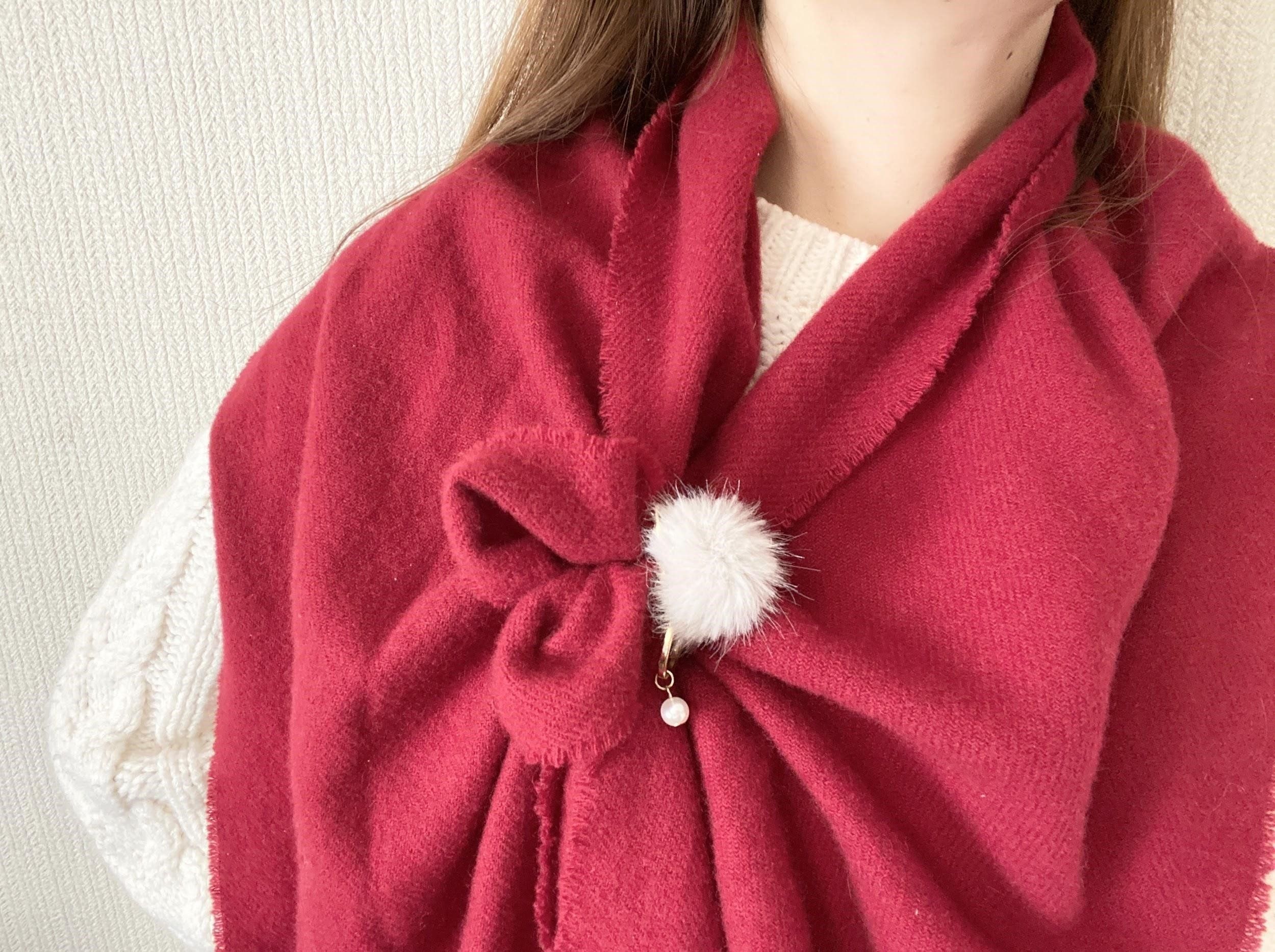 最後に形を整えて出来上がり。ニットにも、コートの上からも出来るアレンジです。