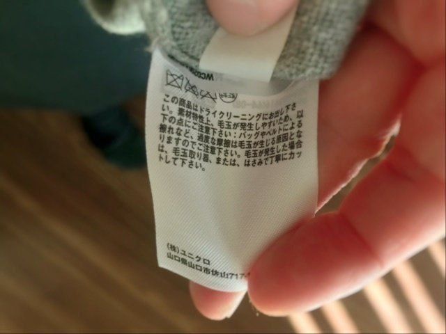 ユニクロのカシミヤニットの洗濯絵表示は「水洗い不可」なので、クリーニングに出すのが基本です。表示にも「ドライクリーニングにお出し下さい」とありますね。
