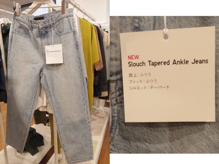 まず気になったのがデニム。とくにテーパードシルエットのものが多くありました。写真はNEWアイテムの「Slouch Tapered Ankle Jeans」。