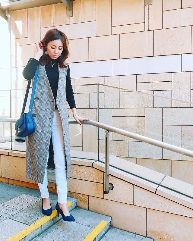 本格的な羽織りものの、前倒しで使えるのがロングジレ。ジャケットやブルゾン、カーディガンに飽きたら、羽織りたい1枚です。ぽっこりおなか&モモ張りもカバーできるうえに、きちんとしたイメージにもなるから、シャツやブラウス合わせもちろん、オフの日にはTシャツ&デニムの格上げにもなる万能選手です。